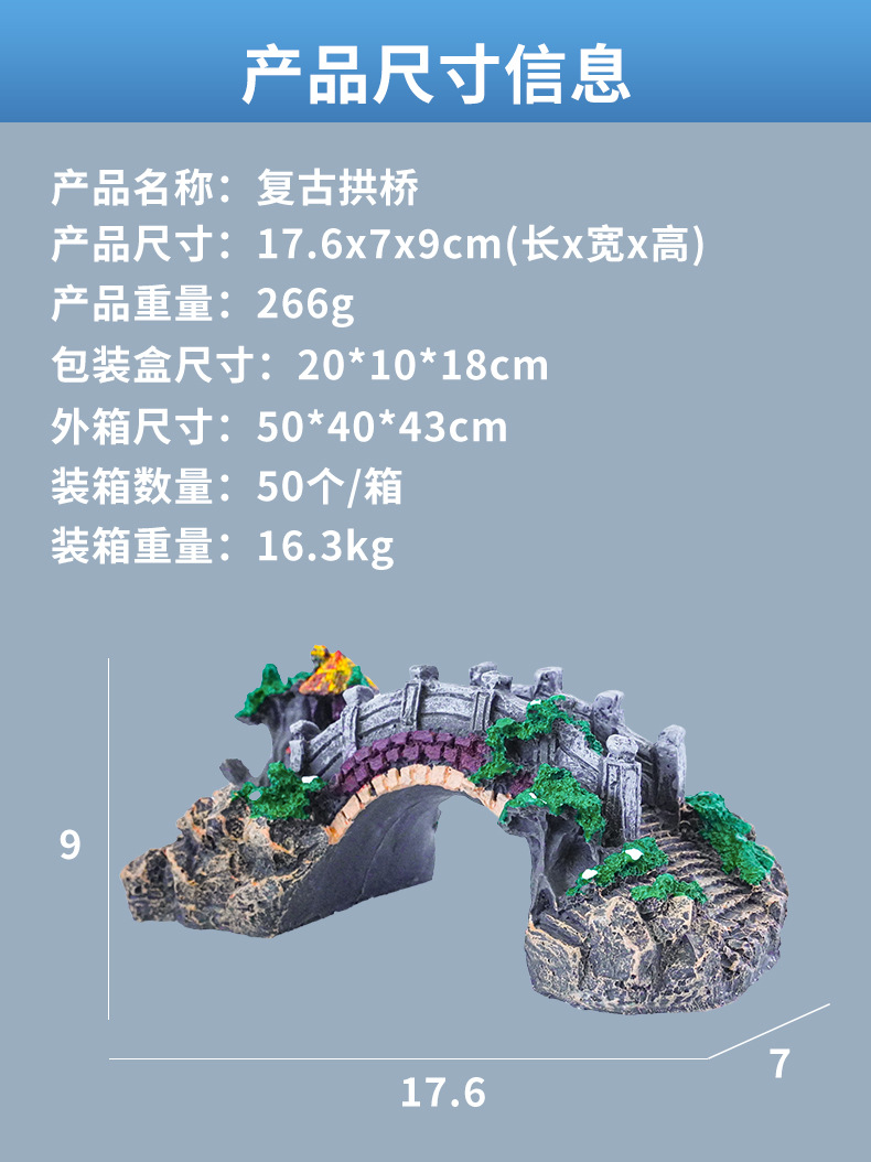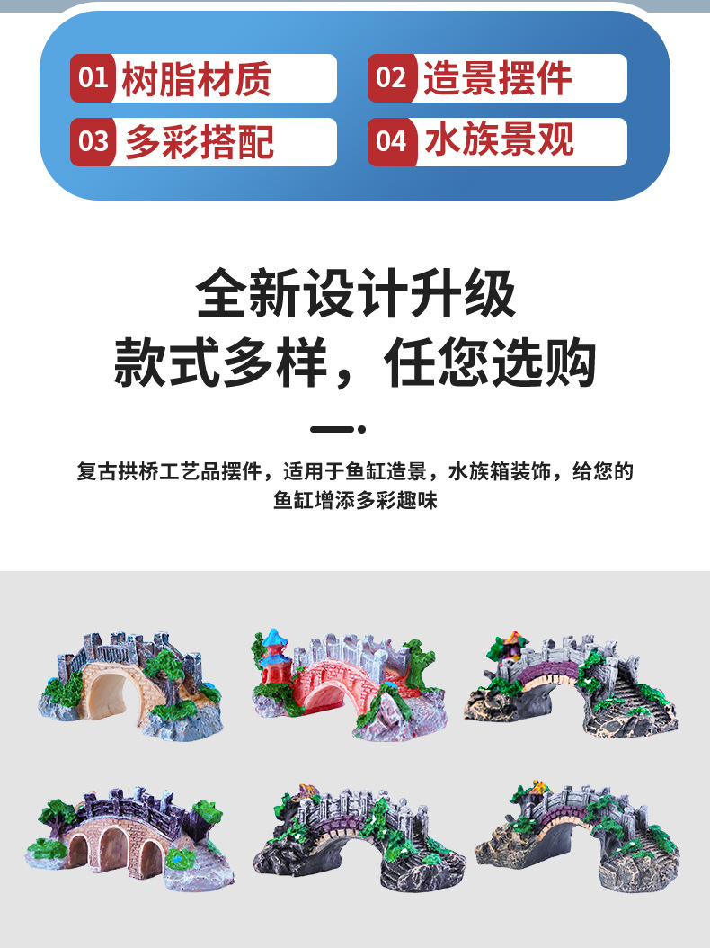 Pecera explosiva, acuario, decoración, paisajismo, adornos de puentes verdaderos y falsos, peces y camarones, esquivando la plataforma de escalada de tortugas, puente de arco retro