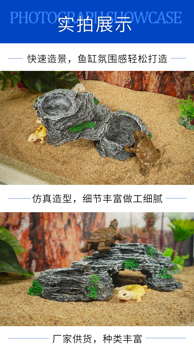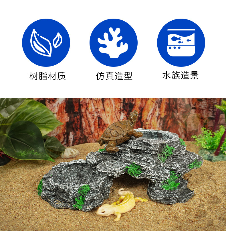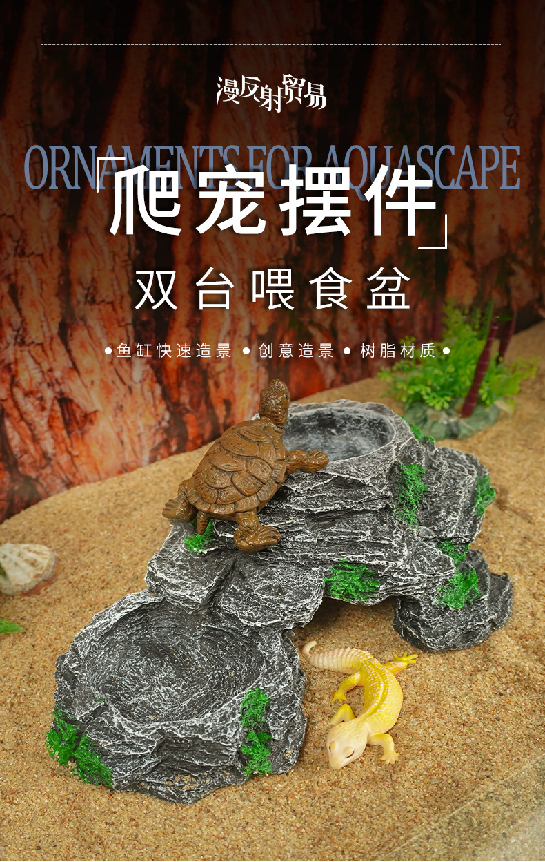 Tazón de alimentación de doble plataforma, plataforma de escalada de tortuga, plataforma de secado, cuenca de agua de tortuga de roca, plataforma flotante, villa de alimentación, paisaje