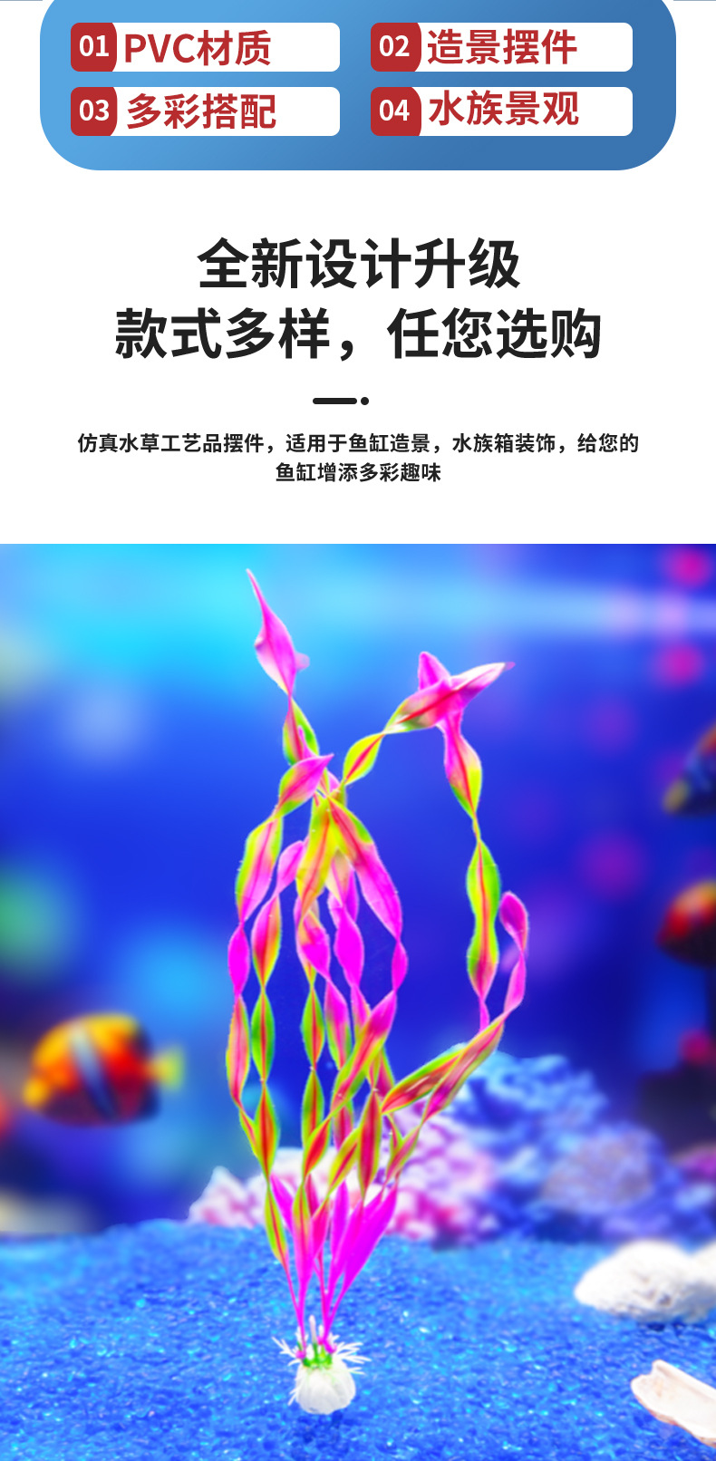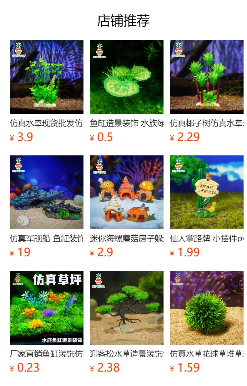 Suministro directo transfronterizo de peceras, decoración de paisajismo, decoración de acuarios, nuevas plantas acuáticas, algas marinas, flores artificiales de plástico