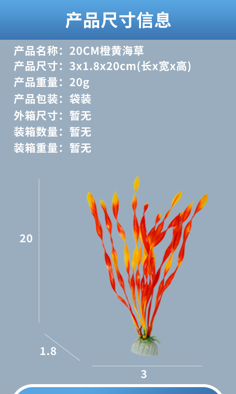 | Especificaciones | Hierba de mar amarillo naranja 20CM,20CM hierba de mar azul púrpura,20CM algas verdes,Hierba de mar verde de 30cm,Hierba de mar verde púrpura de 30cm,Hierba de mar azul púrpura 30CM |