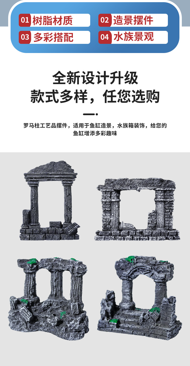 Doble columna romana resina musgo micro paisaje decoración peces tanque paisaje Decoración