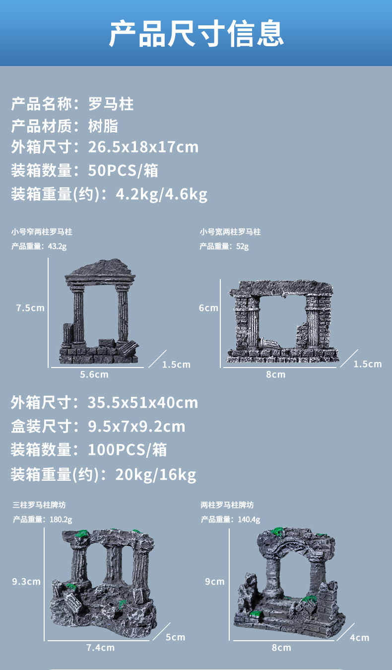 | Especificaciones | Arcada de columna romana de dos columnas,Arcada de columna romana de tres columnas,Columna romana estrecha de dos columnas de tamaño pequeño,Columna romana de dos columnas de tamaño pequeño |