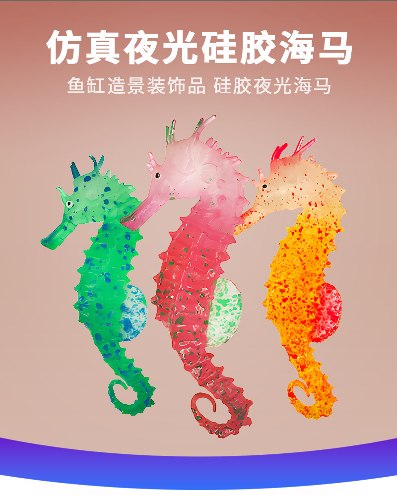 Decoración de Paisajismo para Acuarios Famosa en Internet, Caballito de Mar de Silicona Luminoso Simulado, Fluorescente y Colorido para Acuarios con Ventosa