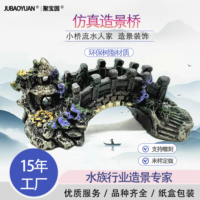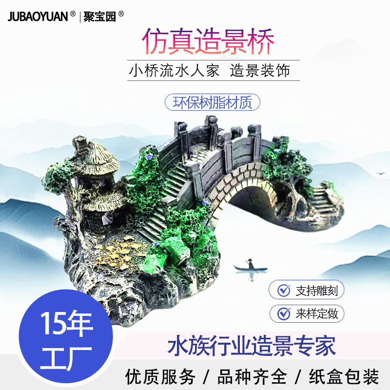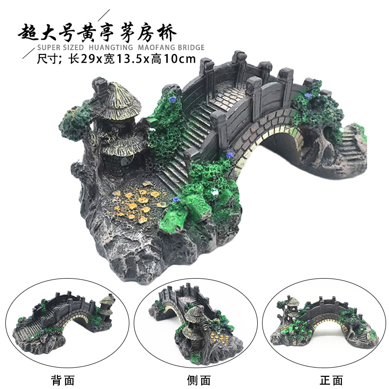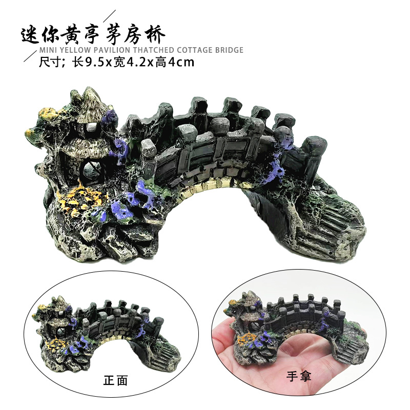 Decoración de paisajismo de pecera, refugio, puente de la casa, equipo de acuario, puente de resina, plataforma de escalada de tortuga, acuario, decoración de puente de arco retro