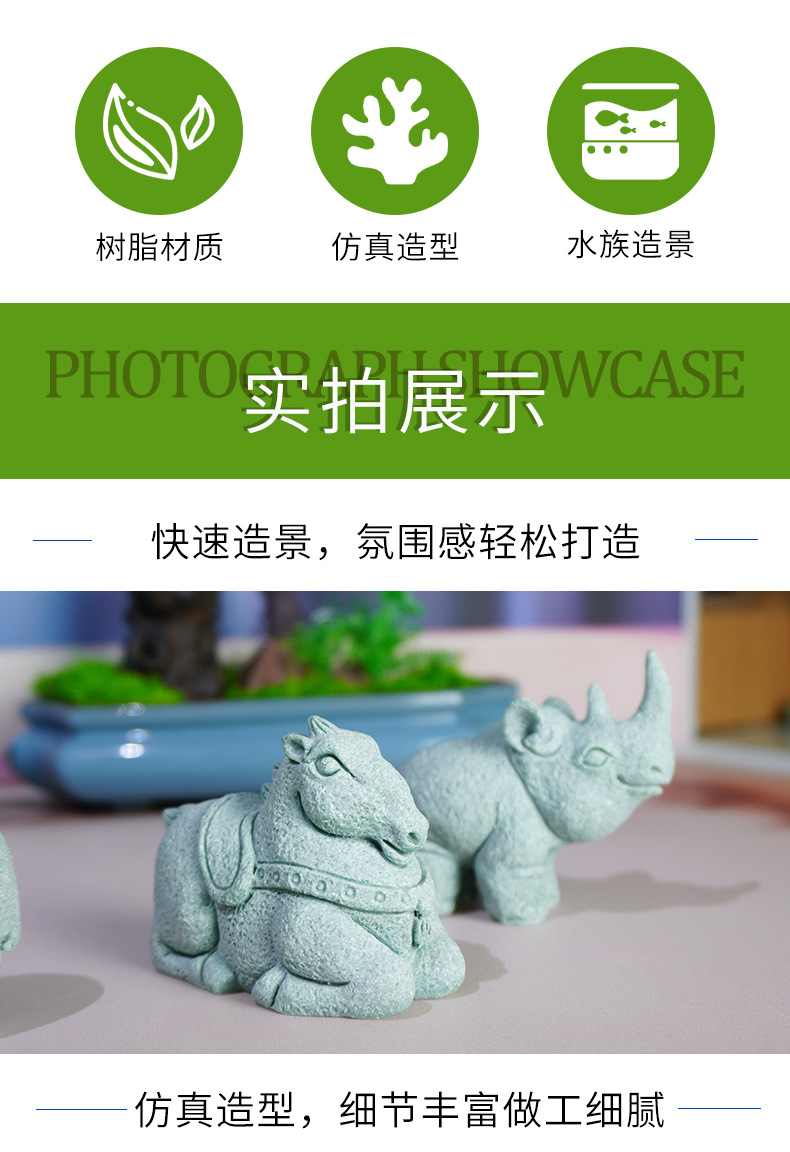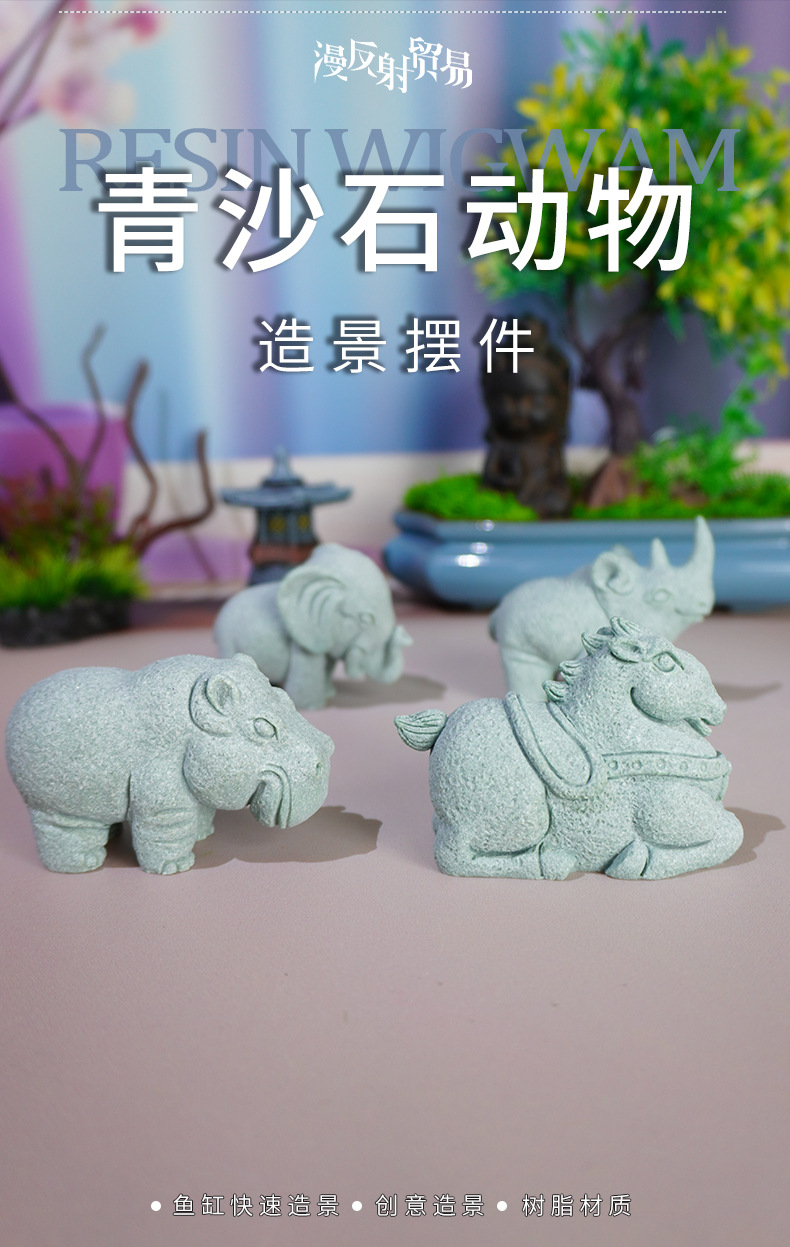 Decoración de entrada de muebles para el hogar Zen Xinzhong nuevo producto transfronterizo imitación piedra Tangma elefante rinoceronte hipopótamo pecera decoración de paisaje