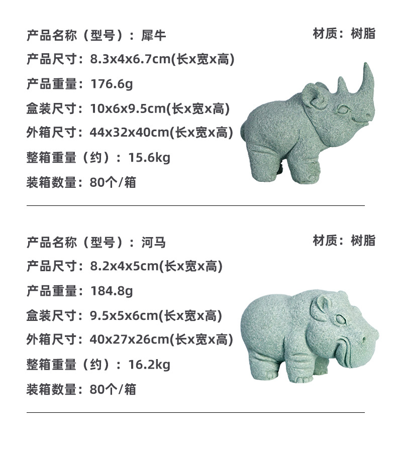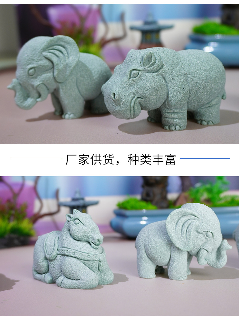 | Estilo | Adornos de piedra de arena azul Tangma elefante rinoceronte hipopótamo |