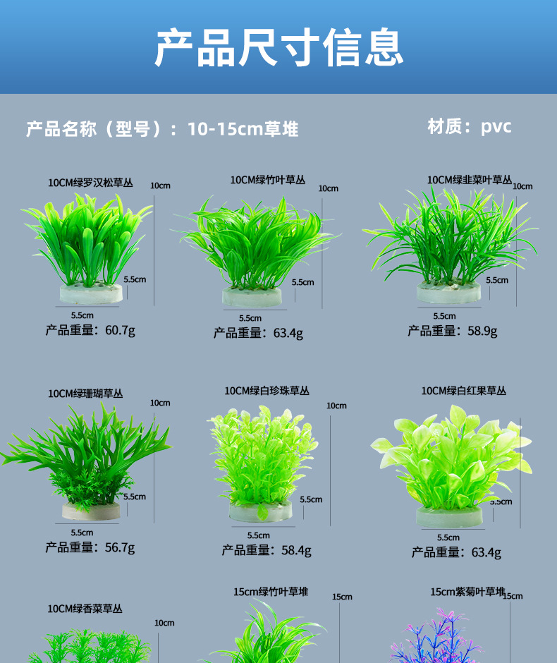 Suministros de flores falsas Simulación de plantas acuáticas Venta al por mayor Especial transfronterizo Simulación de pilas de plantas acuáticas Hierba plástica de 10cm Flores decorativas Carpas herbívora