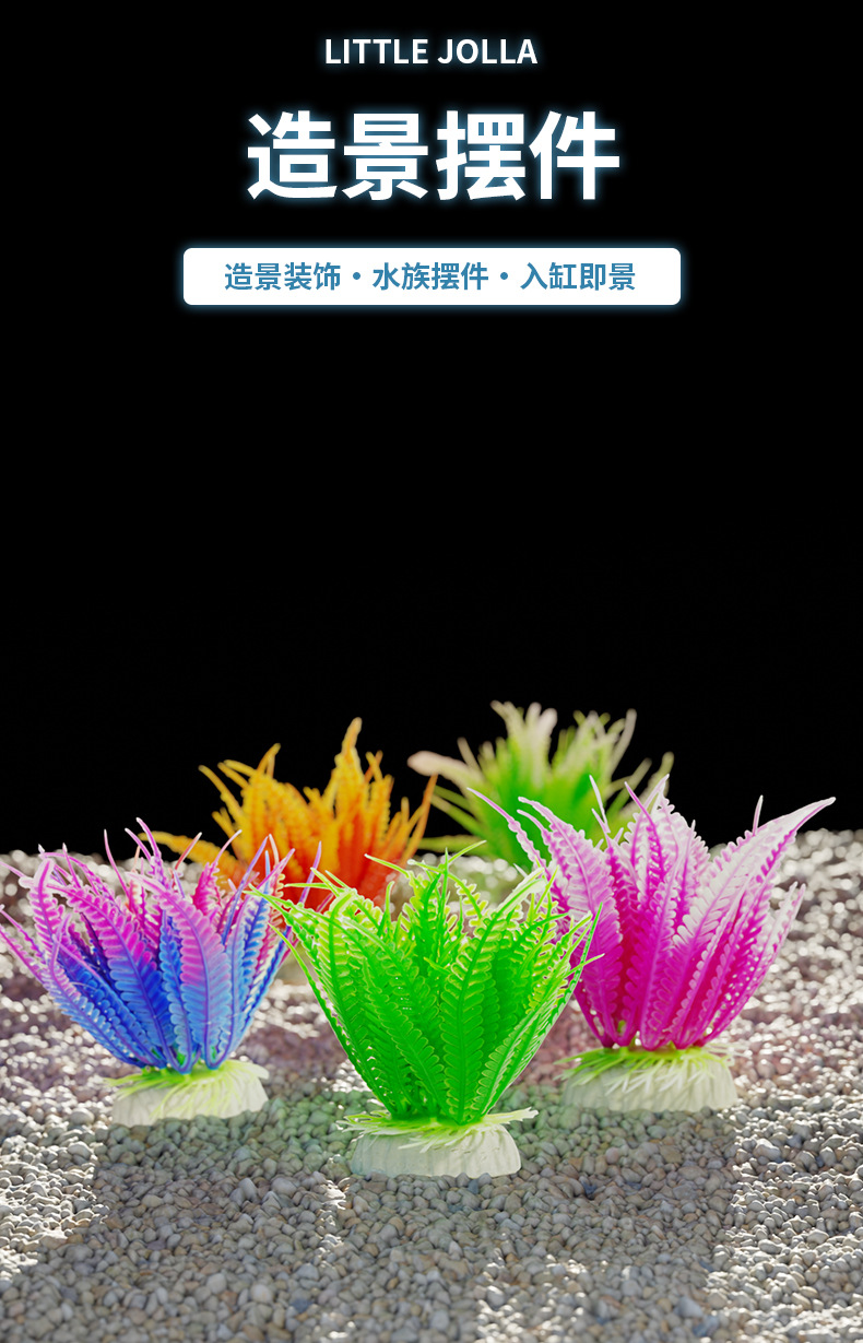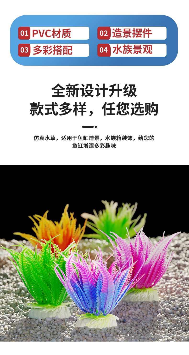 Simulación de ciempiés de hoja larga, plantas acuáticas, acuario decorativo, flores y plantas falsas, pecera al por mayor, acuario de plástico, paisajismo