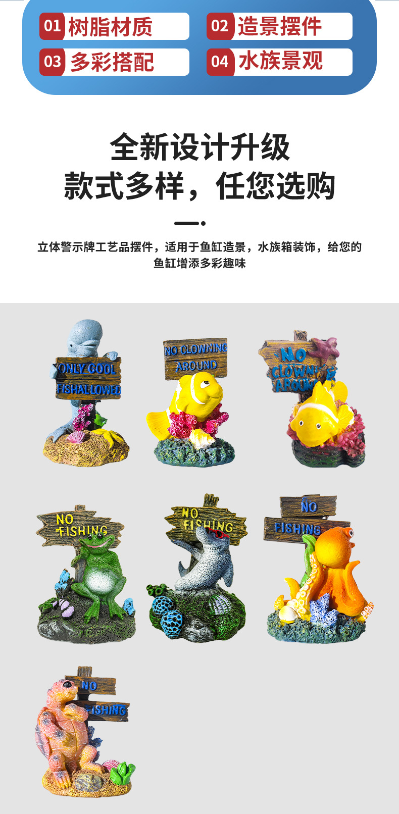 | Especificación | Señal de advertencia tridimensional del pez payaso (sin estrella de mar),Señal de advertencia tridimensional de delfines.,Señal de advertencia tridimensional de tortuga.,Señal de advertencia tridimensional de rana,Tarjeta de advertencia de tiburón tridimensional |