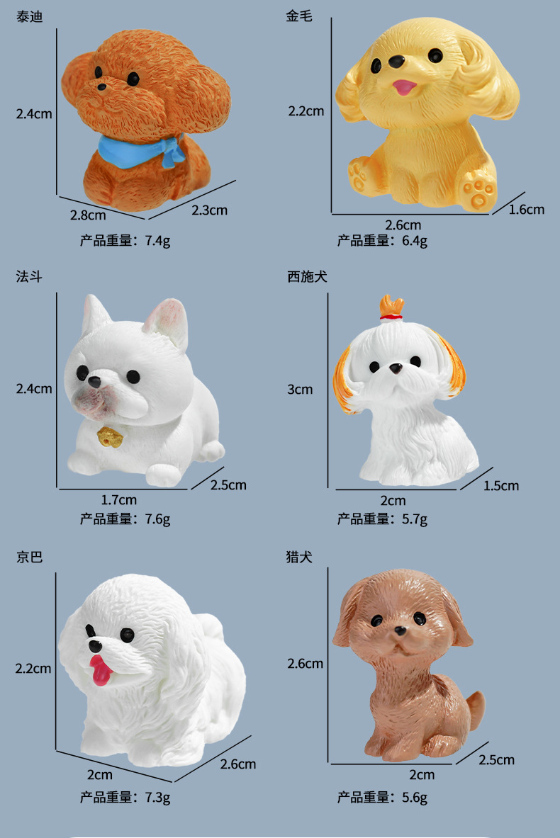 | Colores | Bargo,Corgi,Chow Chow,Bichon,Terrier de toro,Greyhound,Teddy,Retriever de oro,Lucha,Shih Tzu,Jingba,Sabueso |