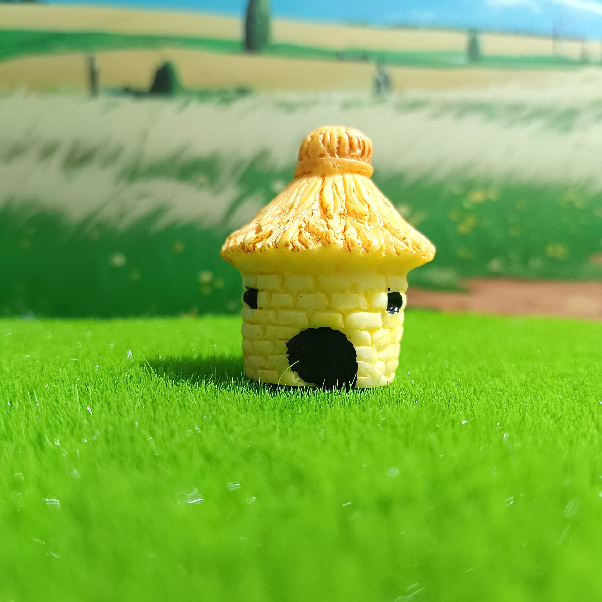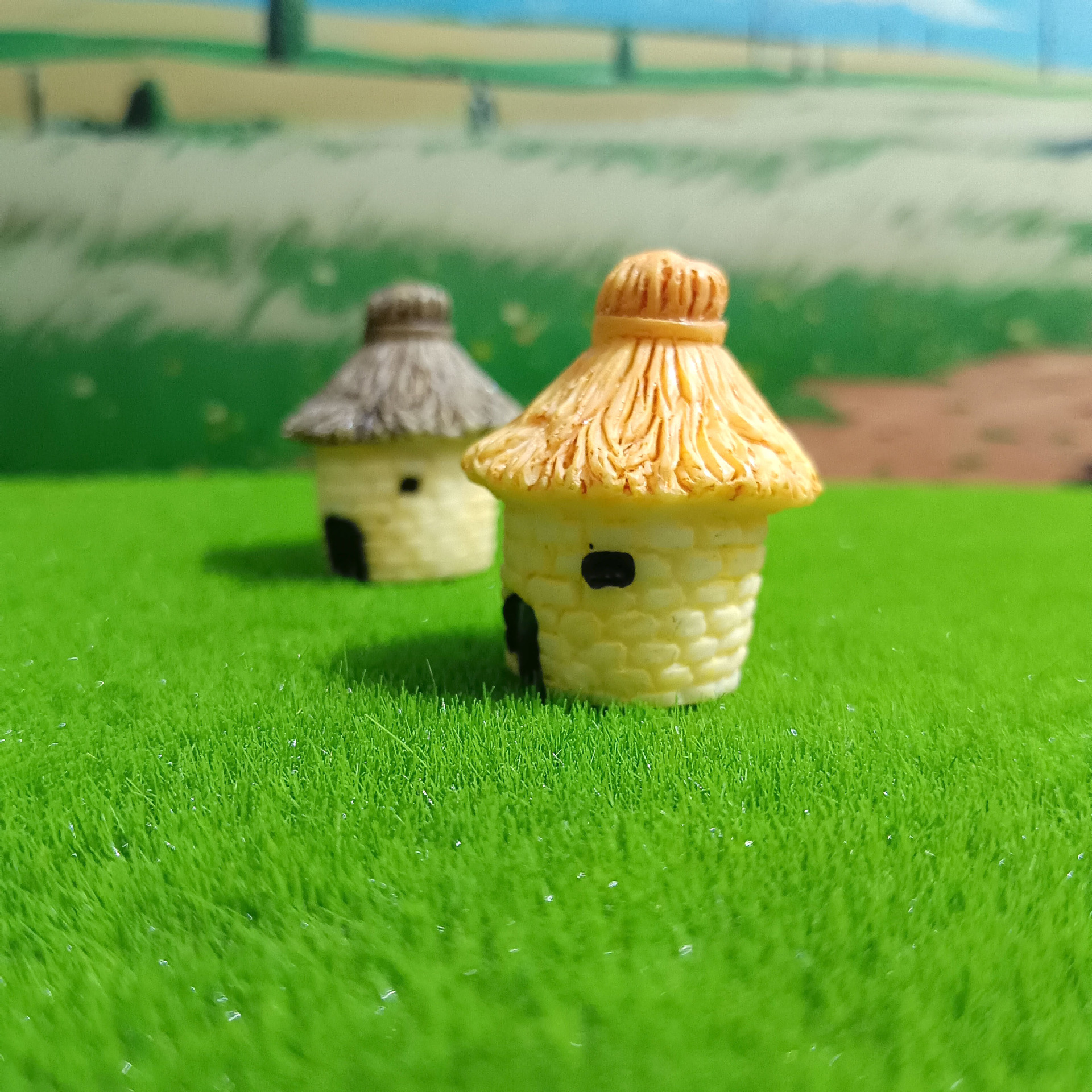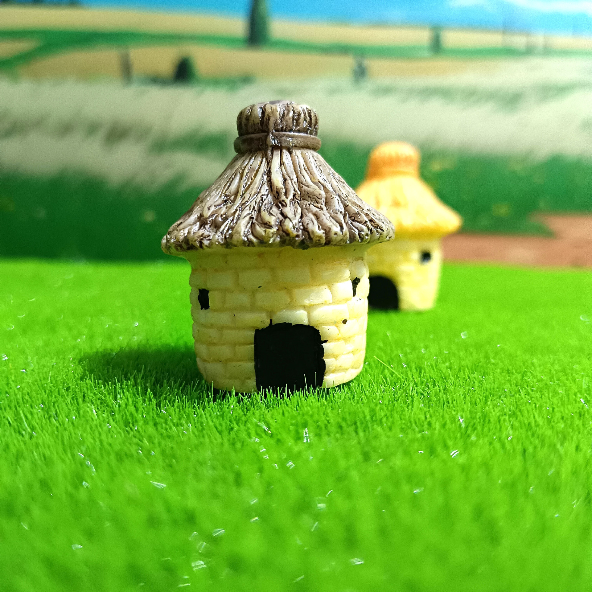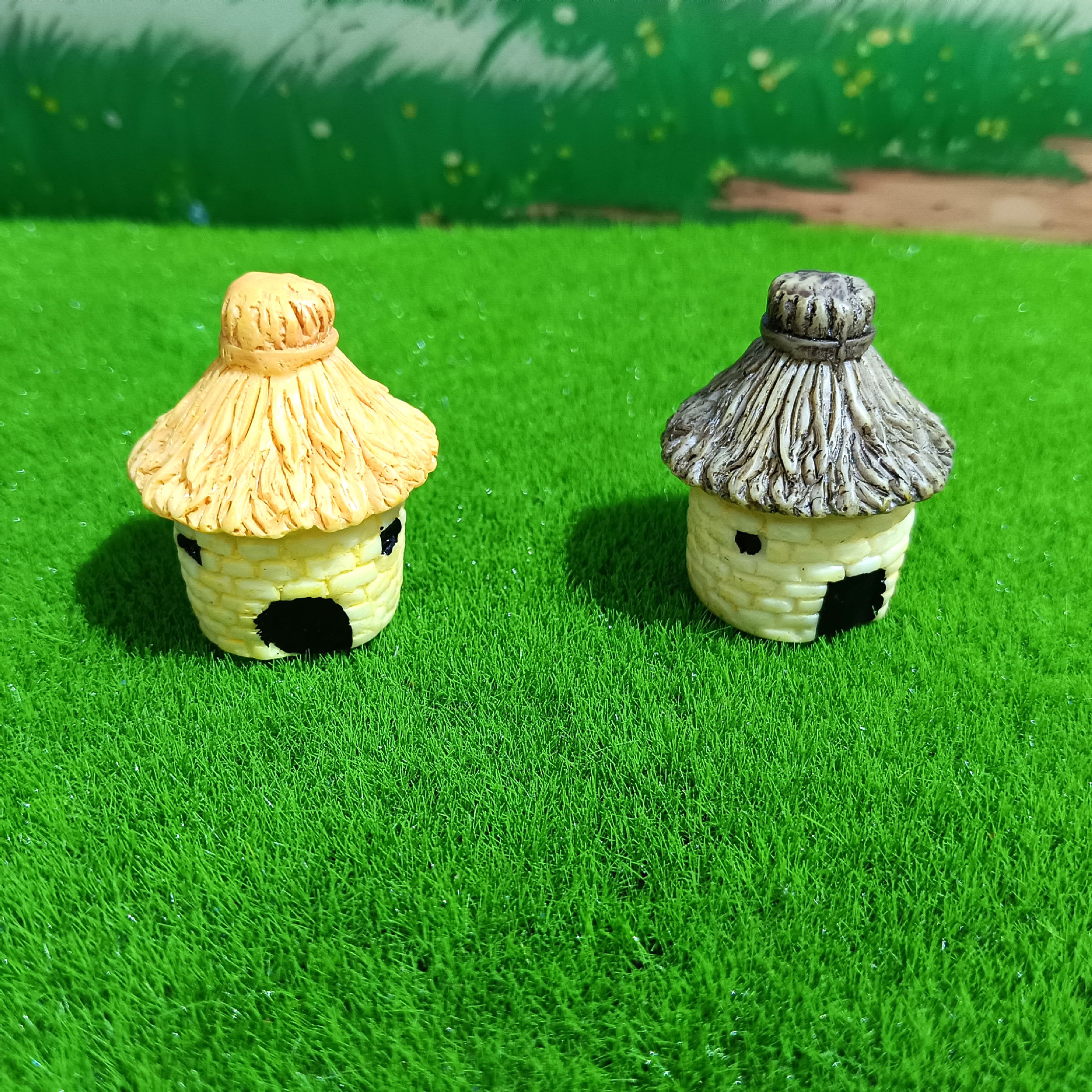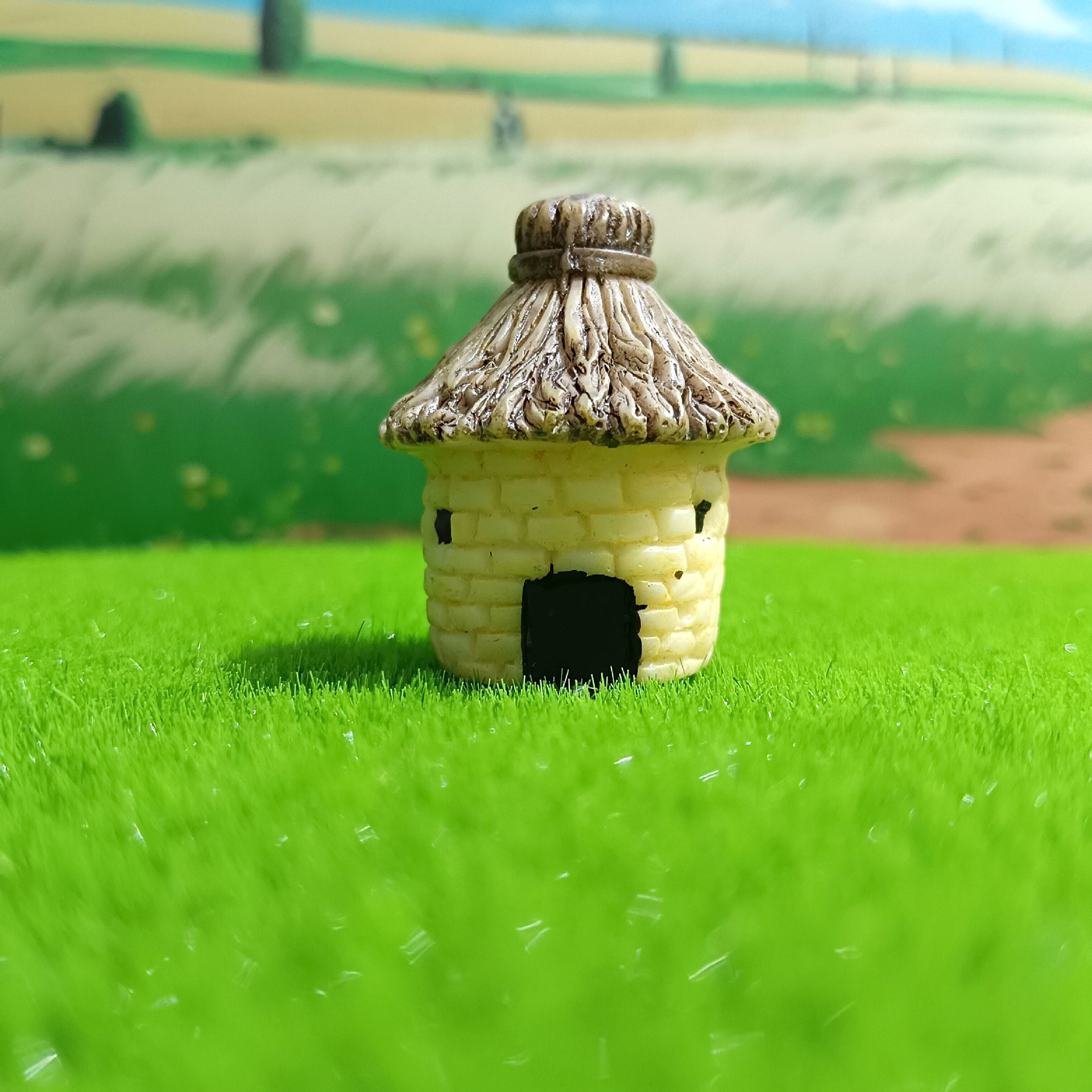 Decoración de paisajismo de pecera linda casa redonda casa con techo de paja micro paisaje ensamblaje de bricolaje granero pequeño adorno