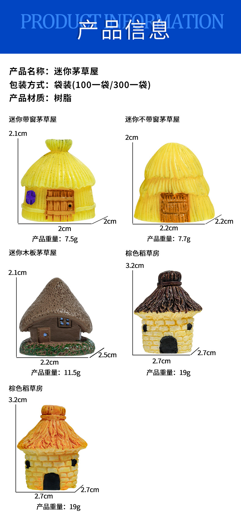 | Colores | Mini cabaña de paja de madera,Mini choza con techo de paja con ventana,Mini choza con techo de paja sin ventana,Casa de paja marrón,Casa de paja amarilla |