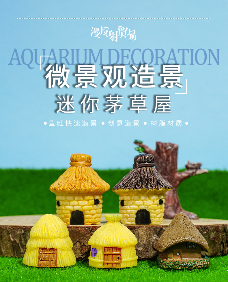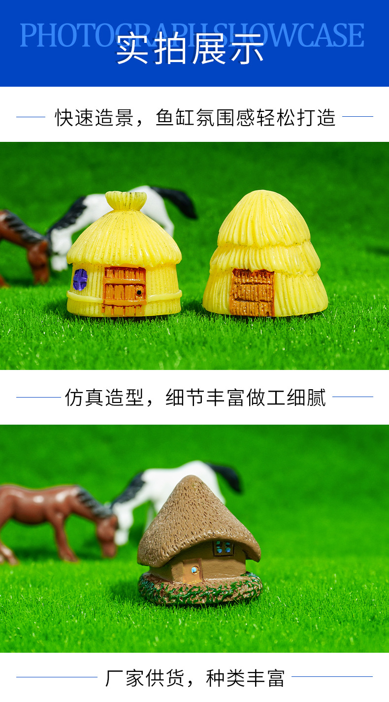 Pequeña pecera, decoración de paisaje, musgo, micropaisaje, resina decorativa, linda casa de paja, casa de campo, mini casa de paja