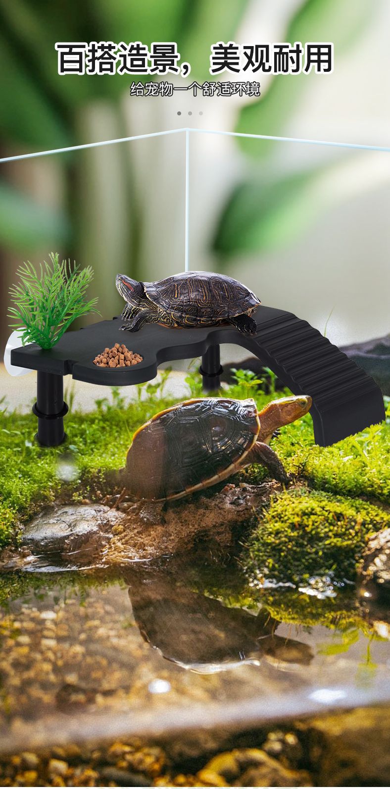 Plataforma de escalada de tortuga, plataforma de secado de plástico de tortuga brasileña, tanque de tortuga, caja de tortuga, descanso, escalera, plataforma flotante, refugio de tortuga