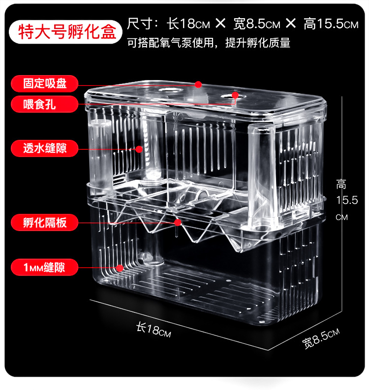 Tanque de peces incubadora Pavo Real incubadora de cría Caja de aislamiento acrílico caja de peces tropicales neumática oxigenación