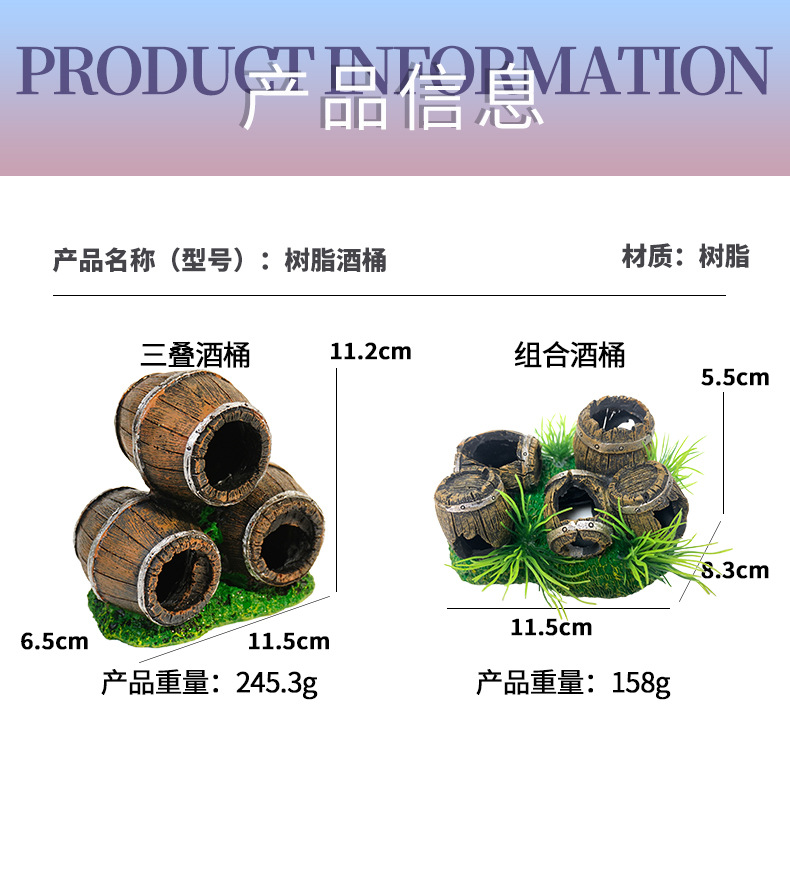 Acuario estilo explosión tanque de césped escenario peces camarones reproducción evitación casa pecera pequeño adornos resina tres pilas cubo de vino combinado