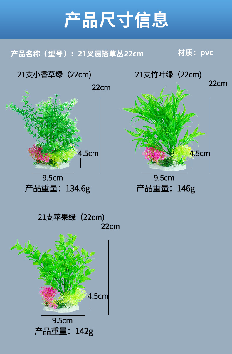 | Especificaciones | 21 pequeñas hierbas verdes (22cm),21 hojas de bambú verde (22cm),21 manzanas verdes (22cm) |