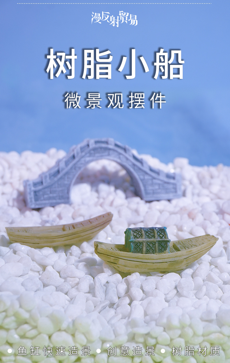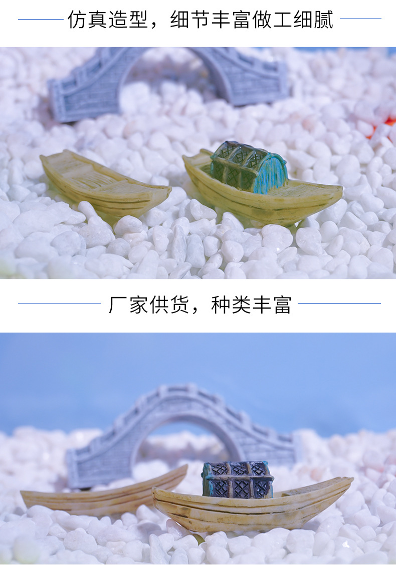 Barco de pesca de simulación al por mayor accesorios de micropaisaje del desierto decoración del acuario resina toldo barco pecera decoración paisajística