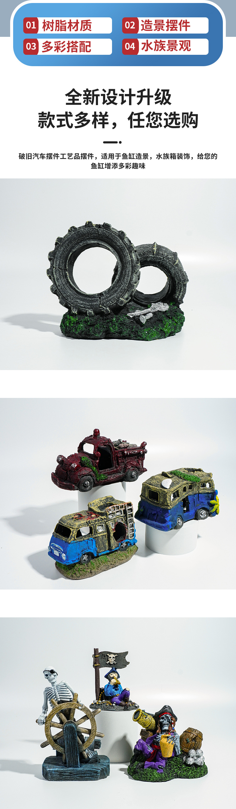 Acuario decoración coche naufragio peces tanque paisajismo resina artesanía pescado Camarón escape adornos coche viejo autobús