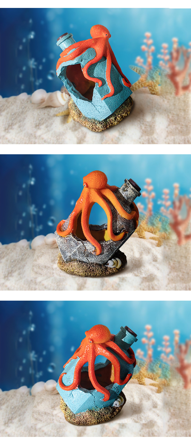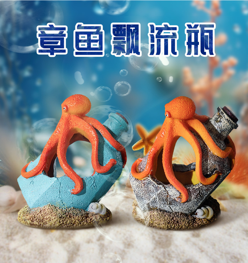 Pulpo gastado en explosión, botella de deriva gris, decoración de pecera, acuario, joyería de resina, pescado y camarones, refugio en la casa