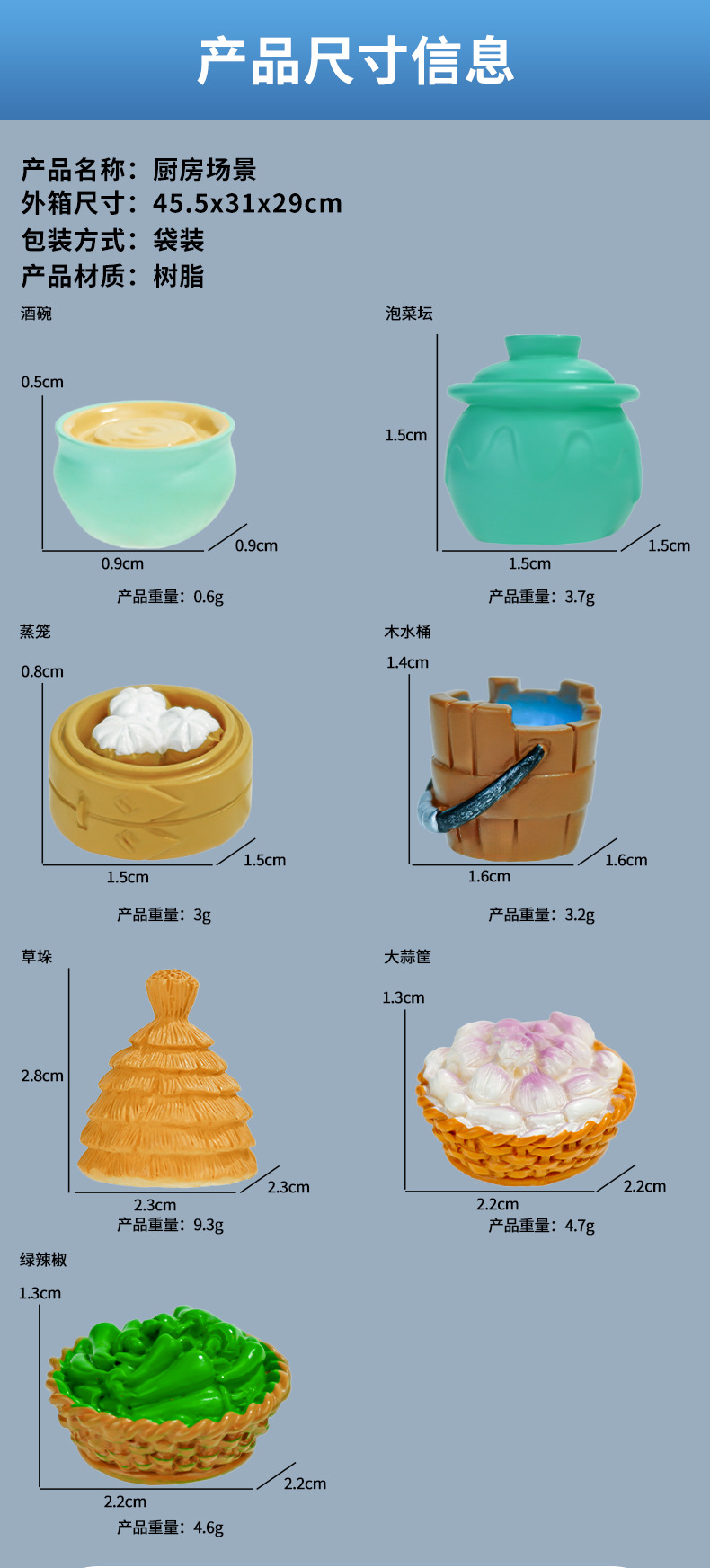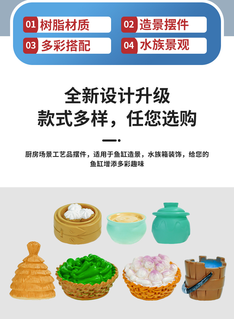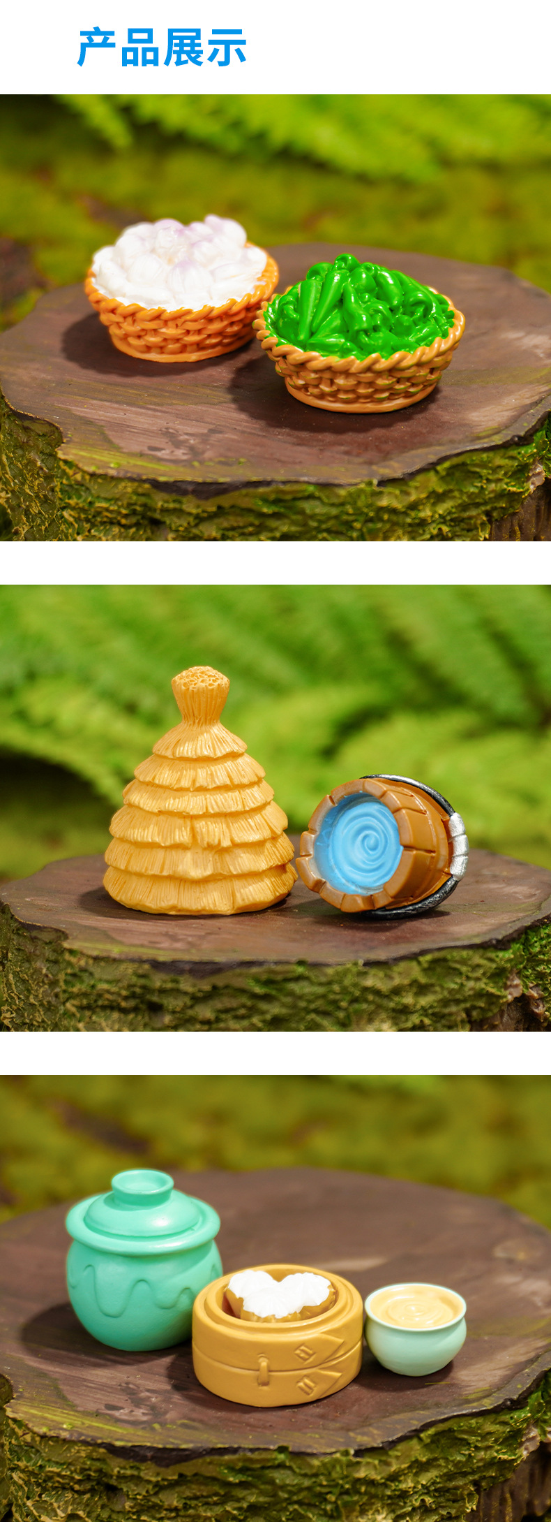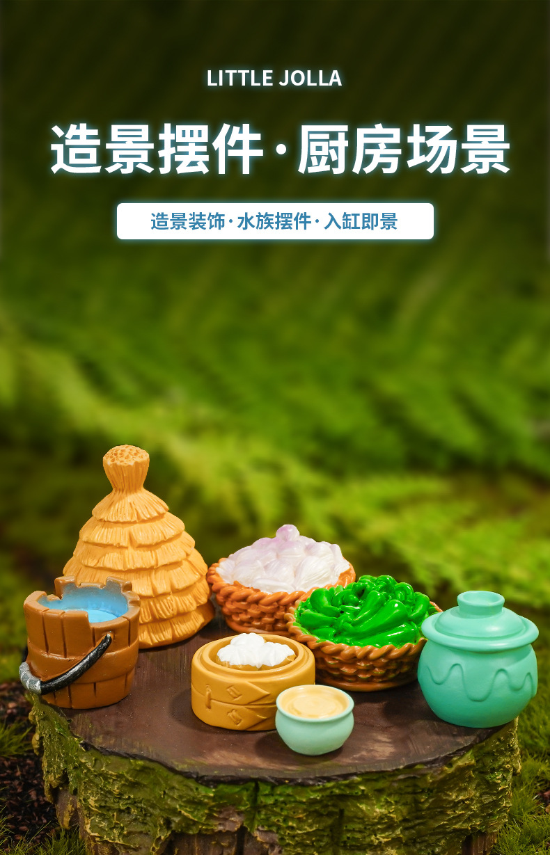 Accesorios de paisaje Pajar Cubo de madera Pimiento Ajo Micro vino Tazón Cesta de bambú Bollos al vapor Decoración de resina Artesanía