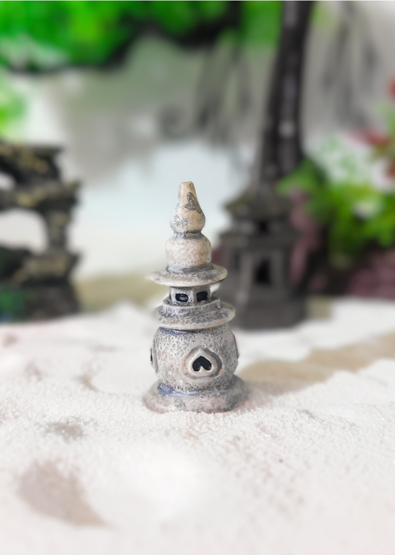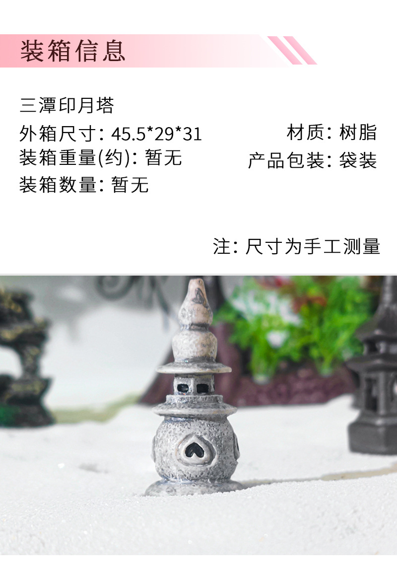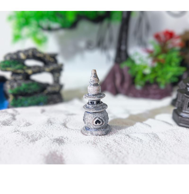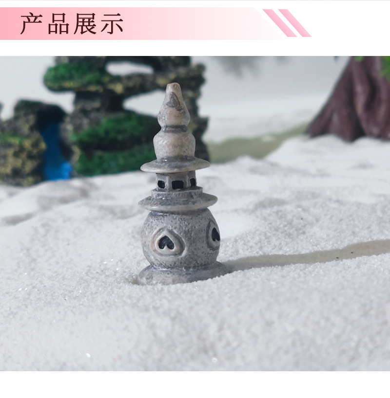 Adornos antiguos, pecera, paisaje, micro paisaje, rocalla Zen, tres piscinas, luna impresa, torre pequeña, linterna de palacio, torre de piedra de resina de venta caliente