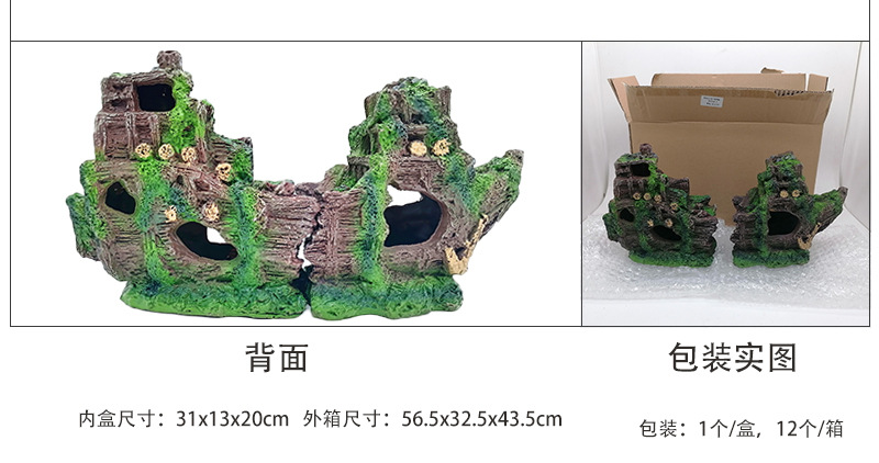 | Categoría de producto | Escenografía de pecera artesanal de resina de naufragio |