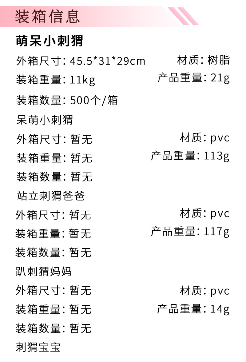 | Especificaciones | Padre erizo de pie,Madre erizo,Bebé erizo |