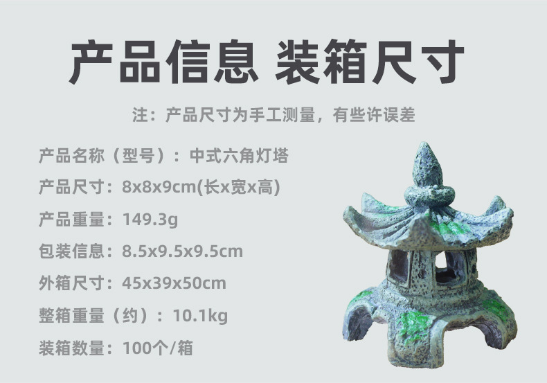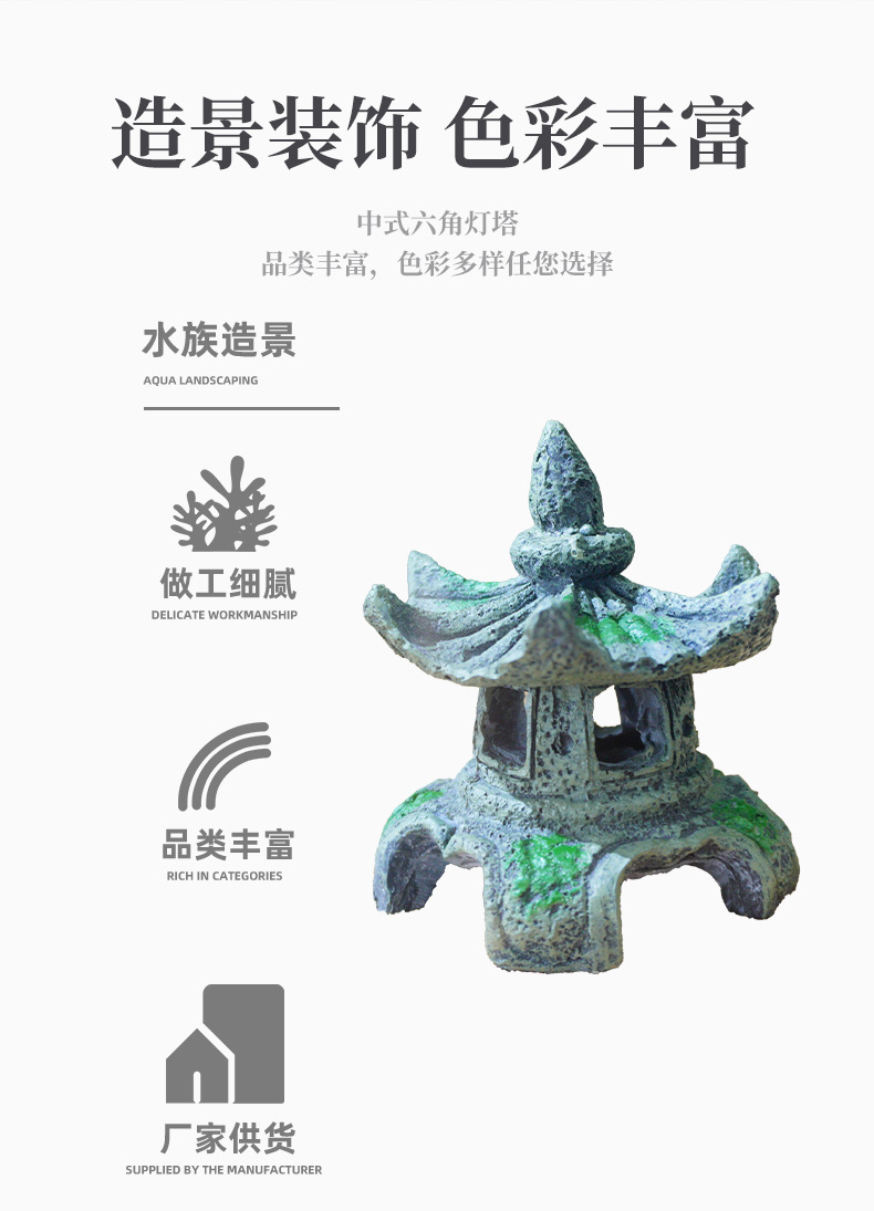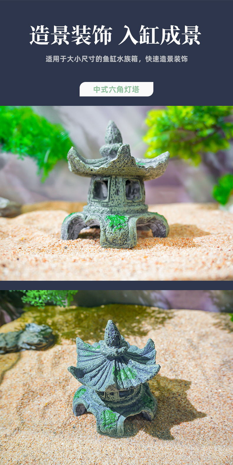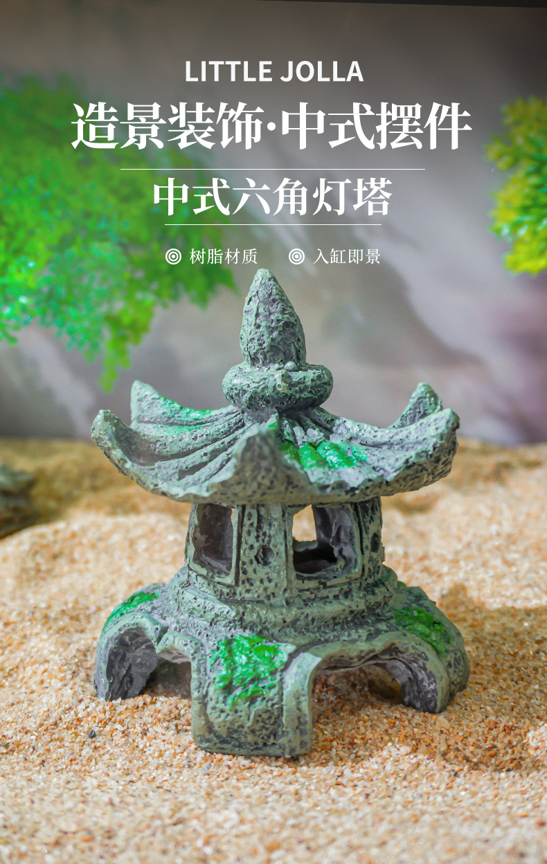Nuevo Adorno de Paisajismo para Pecera de Resina con Forma de Faro de Piedra Arenisca Estilo Jardín Chino, Pabellón Hexagonal, Producto de Venta Caliente Transfronterizo