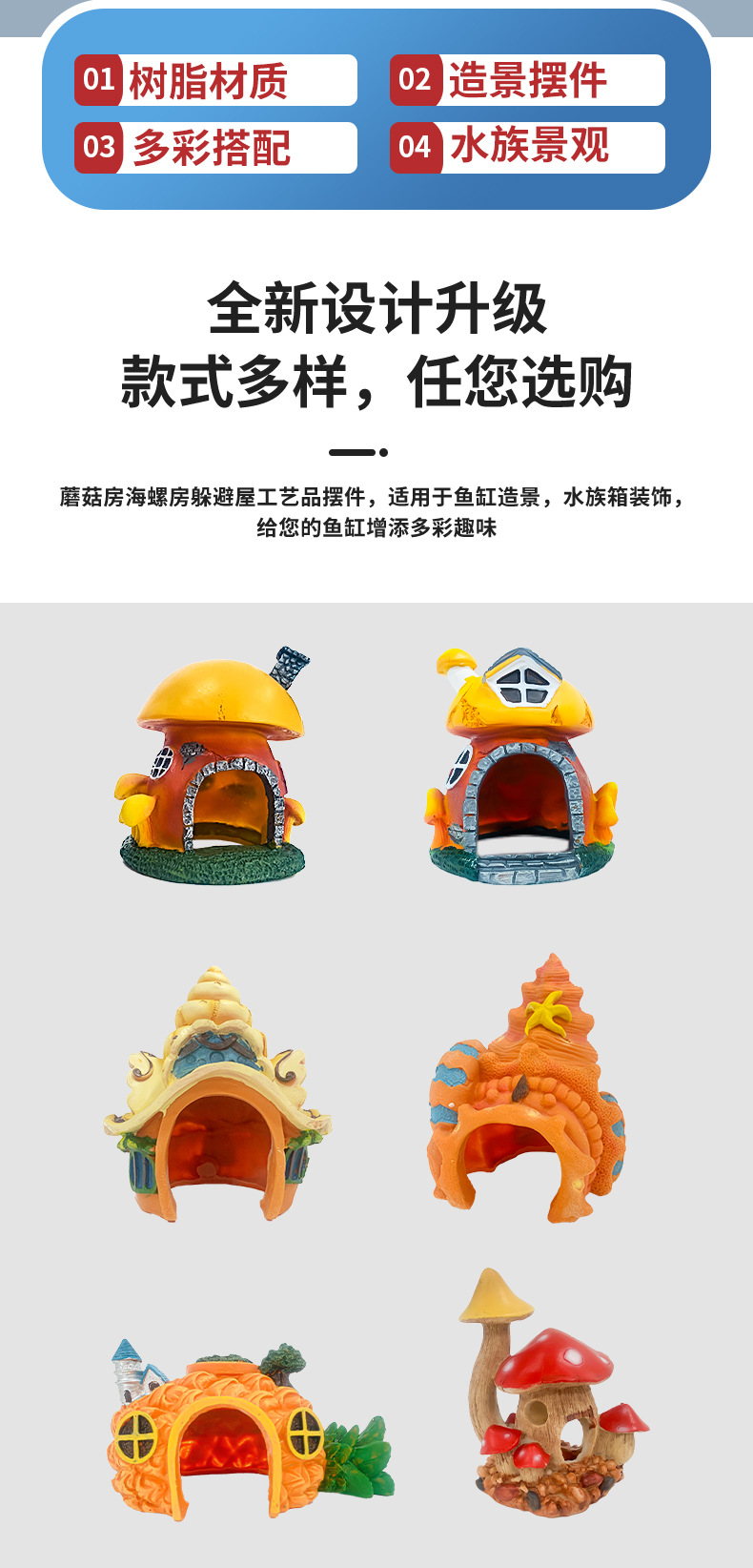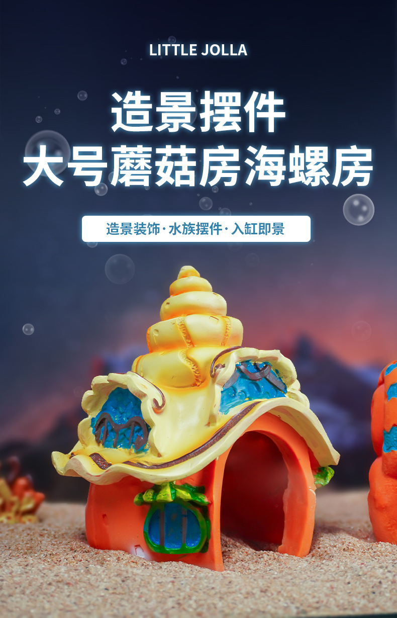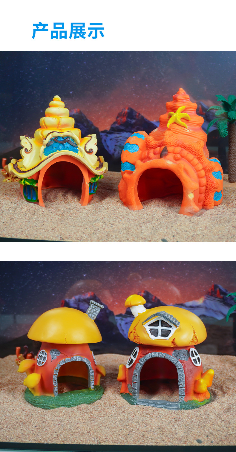 Venta caliente pecera acuario decoración de resina residencia escondida cangrejo hongo concha sala de jardinería caja de cría cangrejo