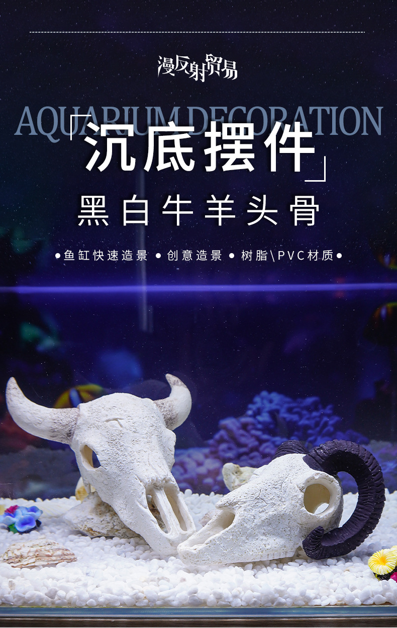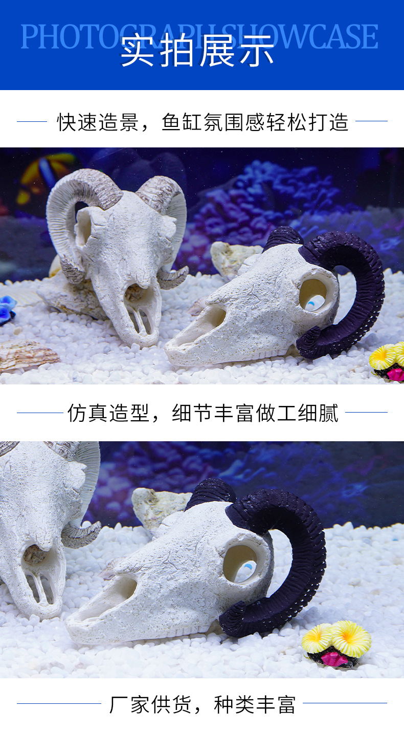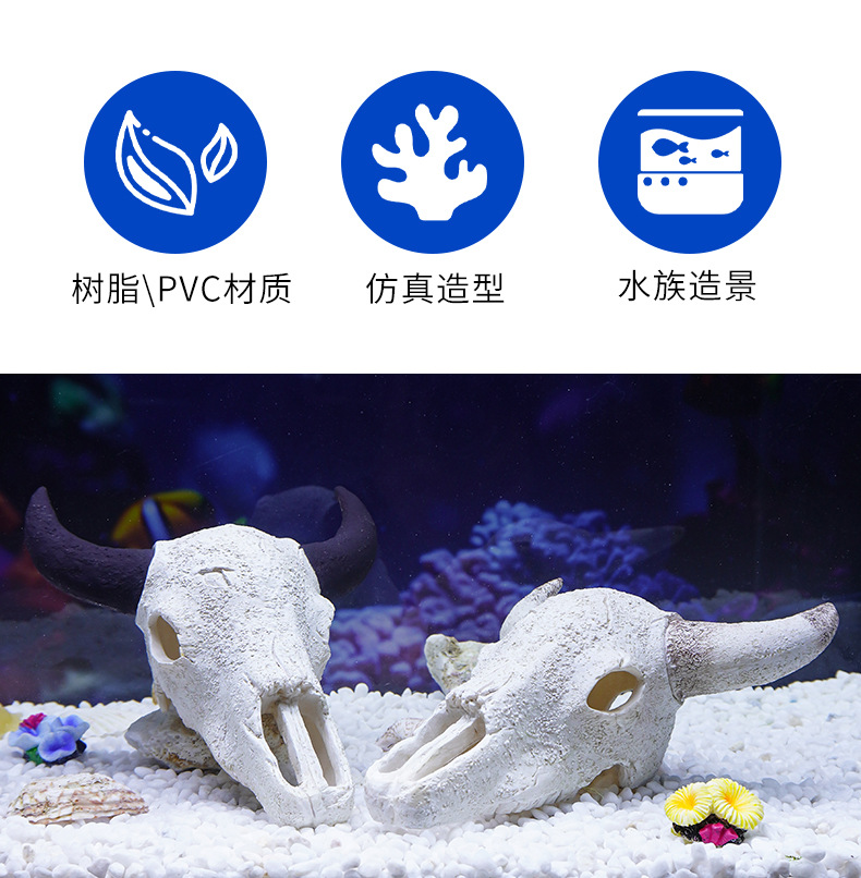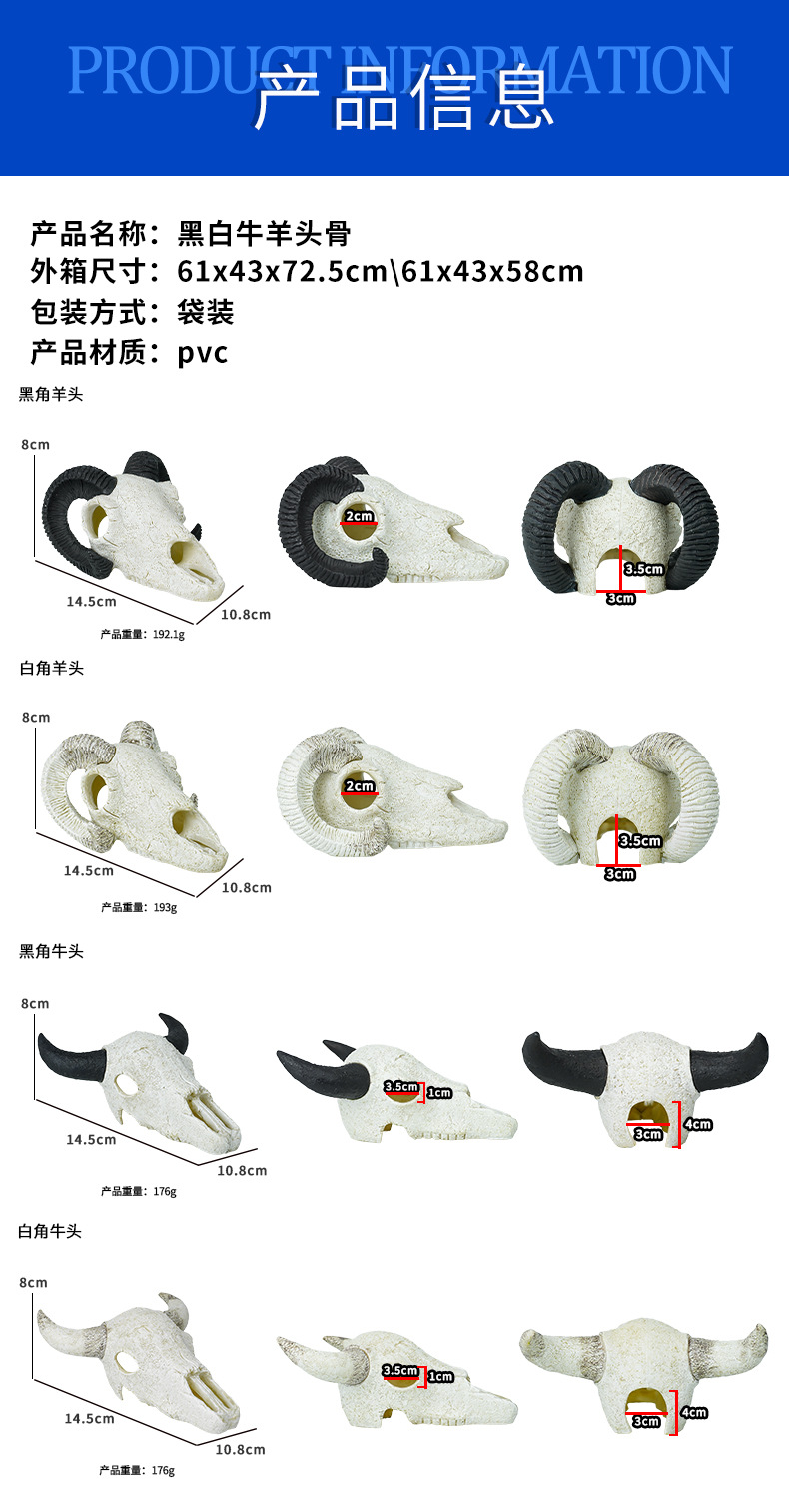 Decoración de calavera de resina Esquina en blanco y negro Cabeza de vaca y oveja Acuario Desert Micro Paisaje Artesanía Animales Huesos Explosiva