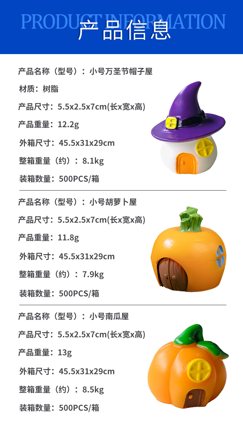 | Especificaciones | Tamaño pequeño sombrero de Halloween Casa,Casa de calabaza de tamaño pequeño,Casa de zanahoria de tamaño pequeño |
