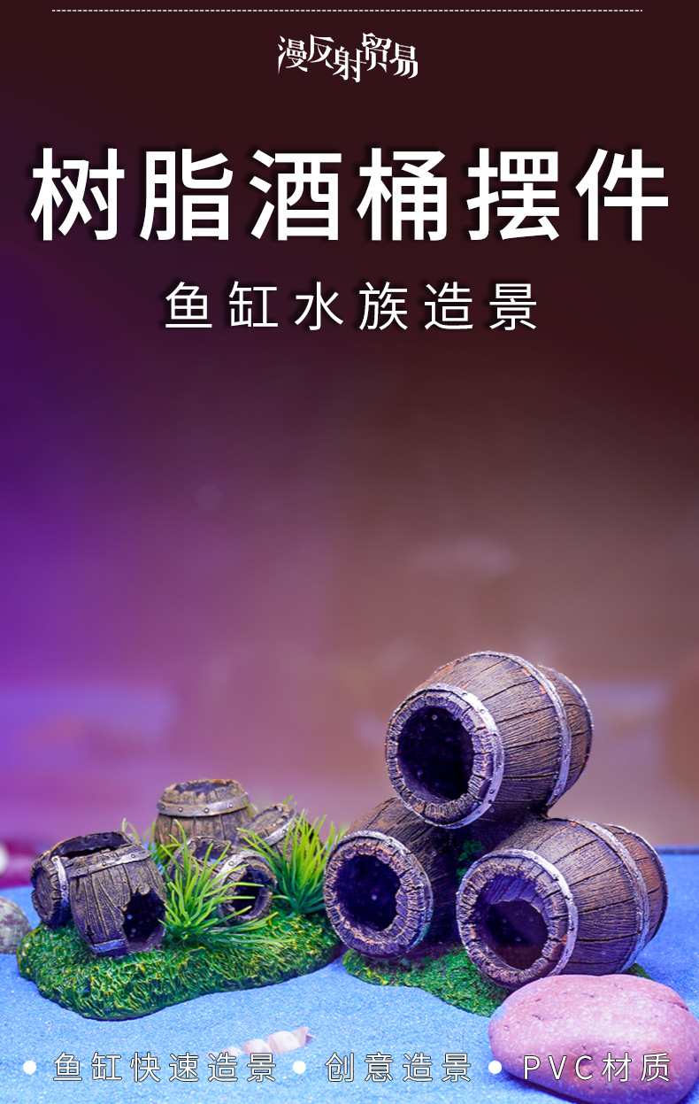 Cubo de vino de resina, pecera, adornos pequeños, adornos, tanque de agua, paisaje, cría de peces y camarones, refugio, estilo de explosión de acuario