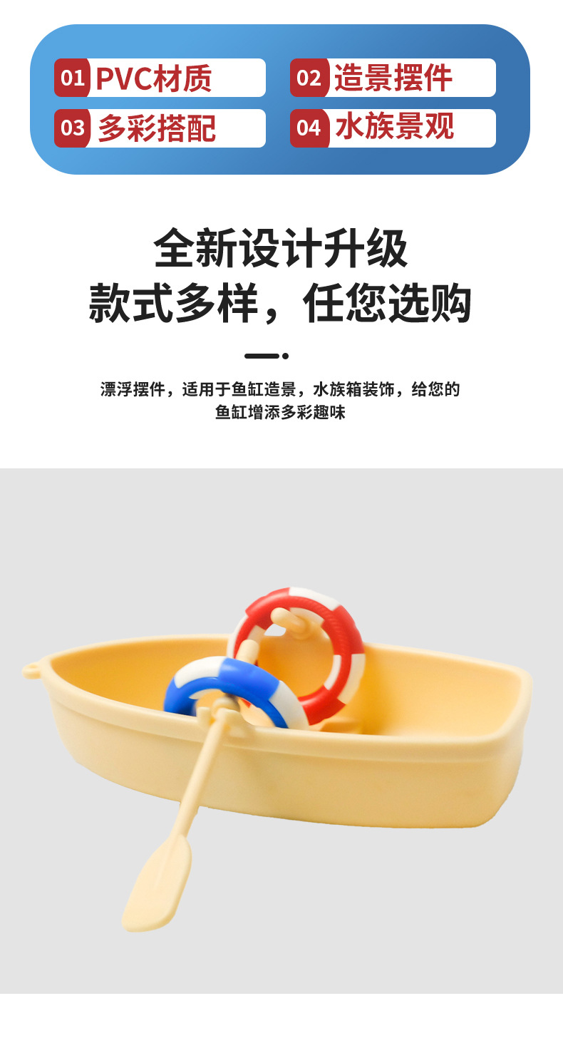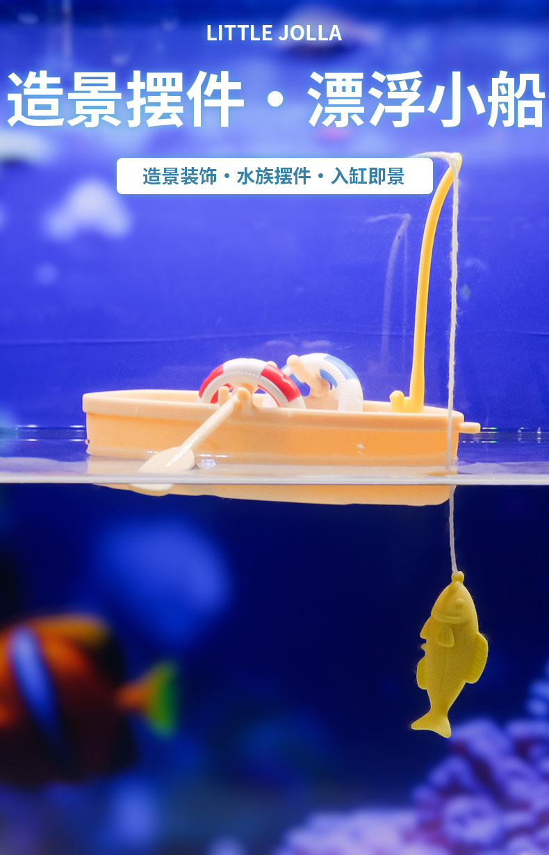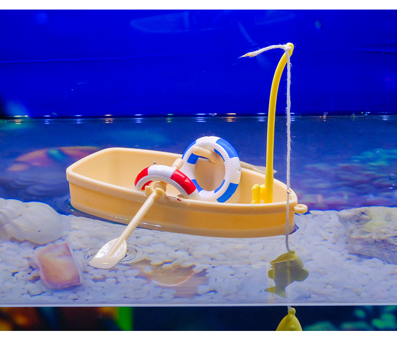 Decoración de paisajismo interesante, acuario, agua, anillo de natación, pesca, barco de pesca, modelo de paisajismo de acuario, barco de plástico flotante