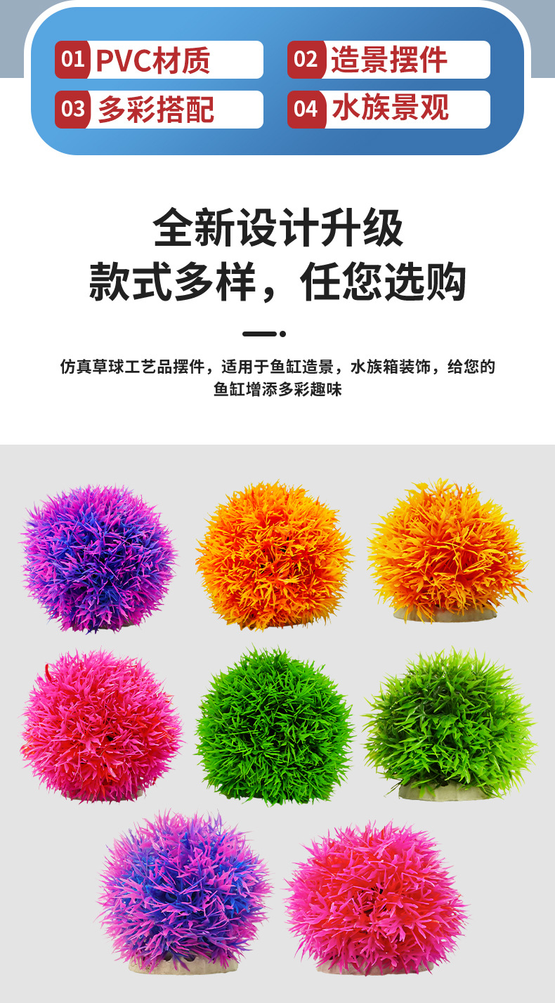 Simulación de plantas acuáticas, bolas de flores, montículos de hierba, bolas de hierba, ventas directas de fábrica, nuevas peceras, paisajismo, peceras, plástico decorativo