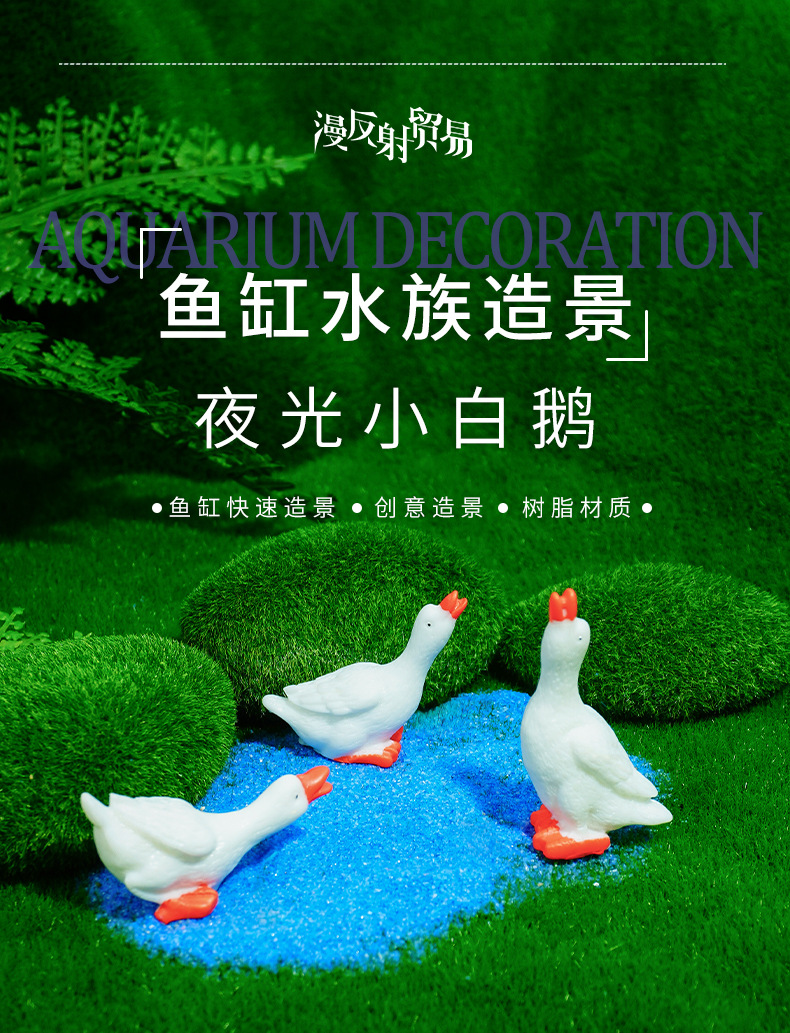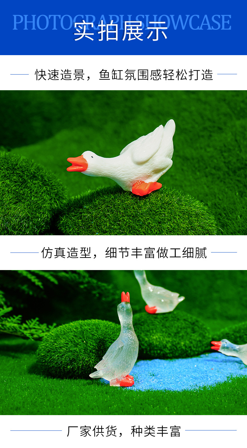 Recomendar resina blanca canto fluorescente ganso blanco pequeños adornos ornamentos de paisajismo de acuario agua potable pato venta caliente