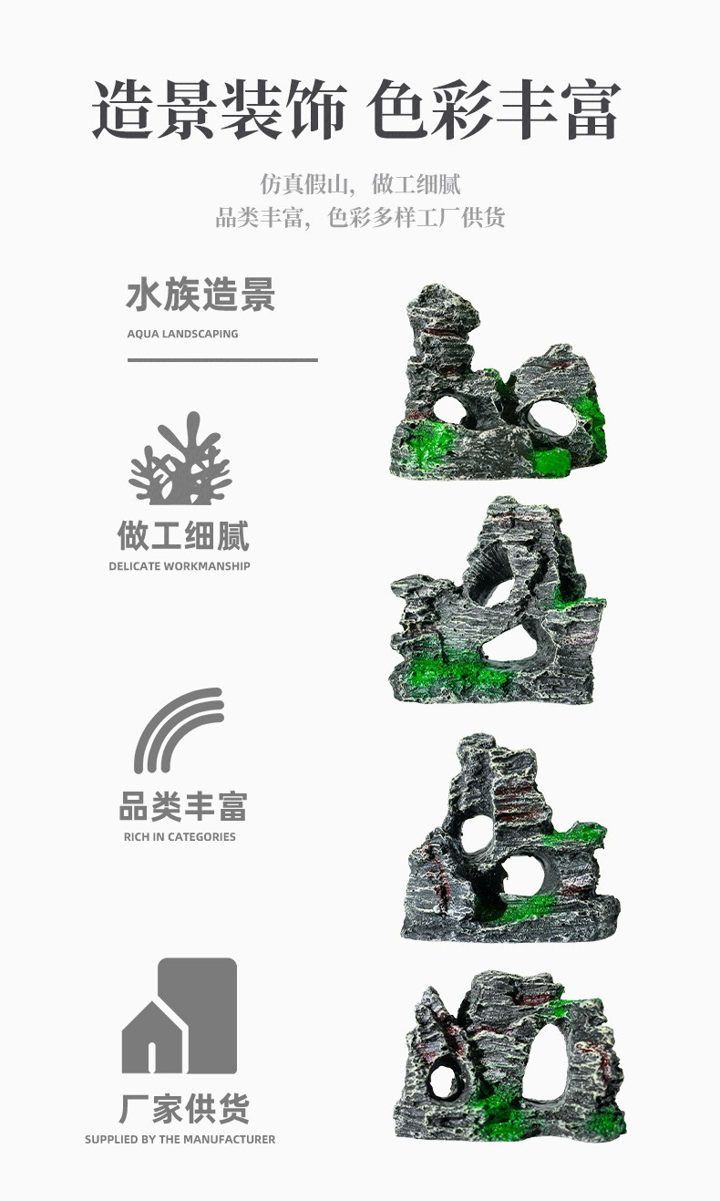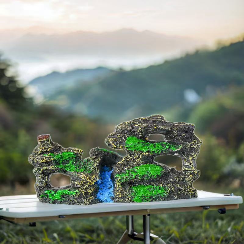 Pecera resina rocalla acuario decoración paisajismo piedra conjunto simulación montaña agua corriente rocalla puente refugio casa