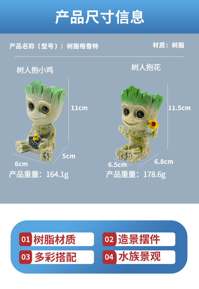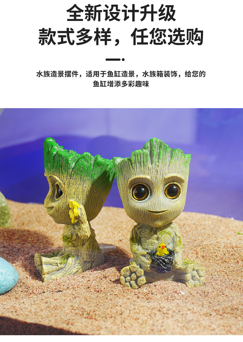 Tanque de peces acuario resina árbol hombre decoración refugio casa decoración sumergido Marvel Grut Groot Fish Tank paisaje