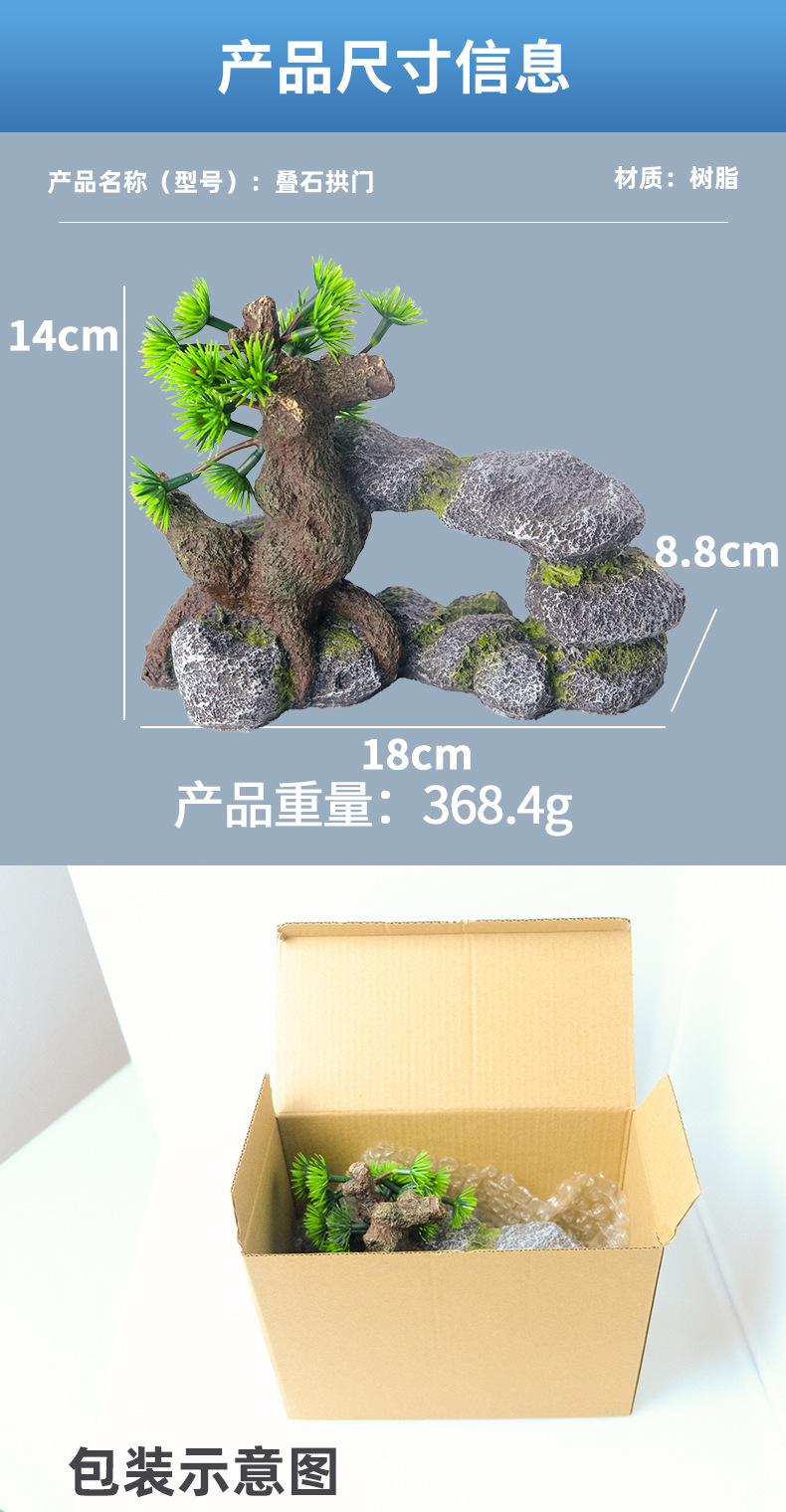Peces y camarones para evitar agujeros, adornos de acuarios, venta al por mayor transfronteriza, celebridades de Internet, estilos explosivos, decoración de peceras, piedras apiladas y arcos de árboles