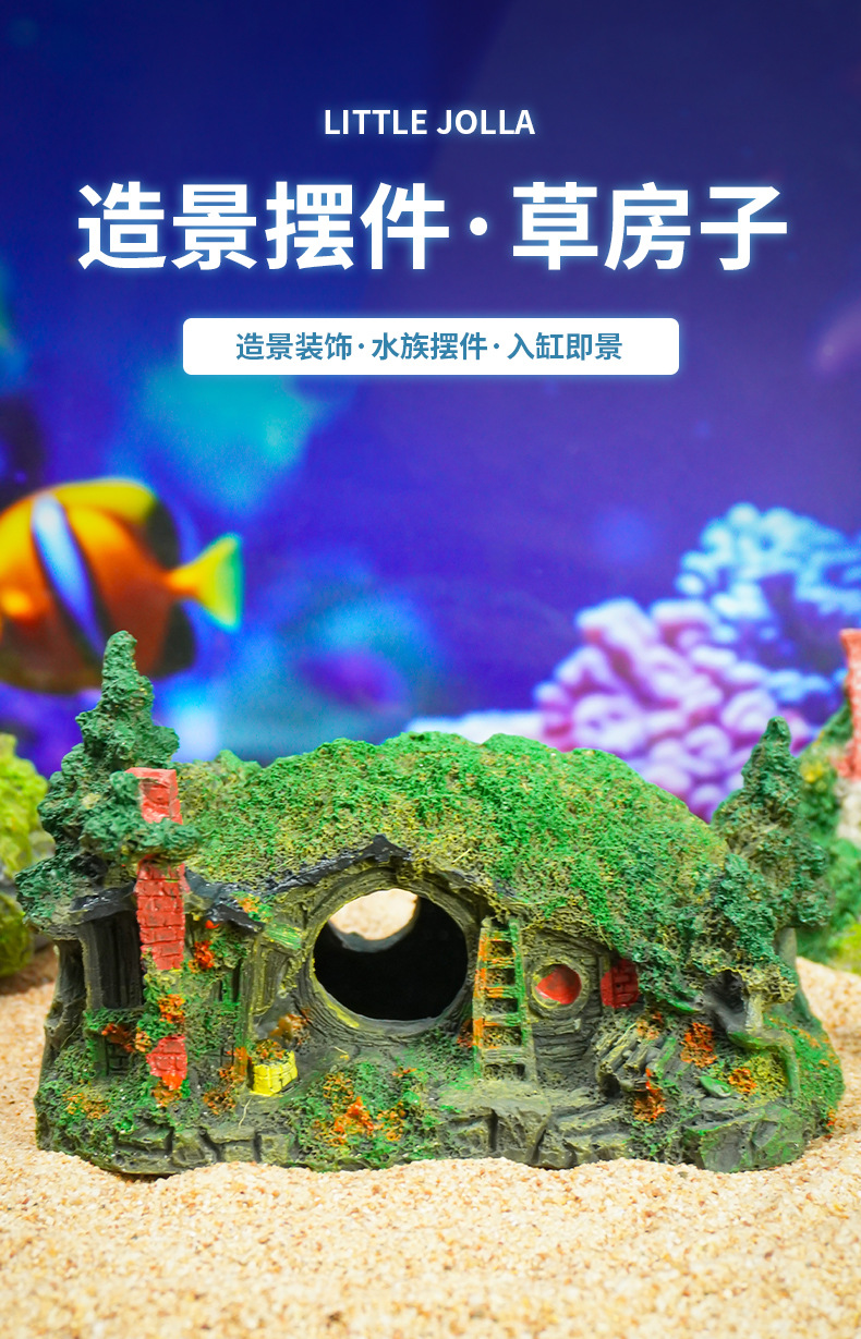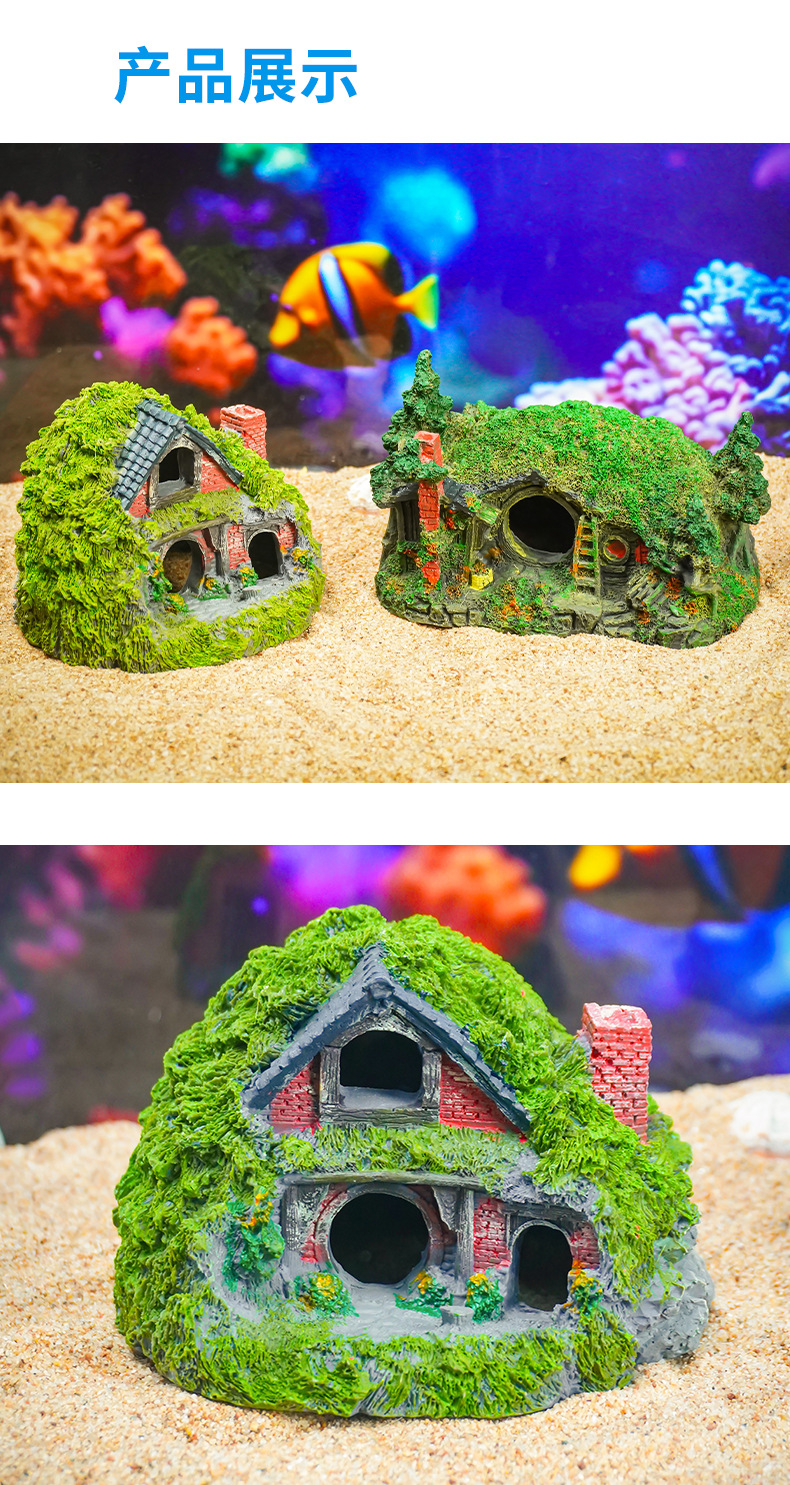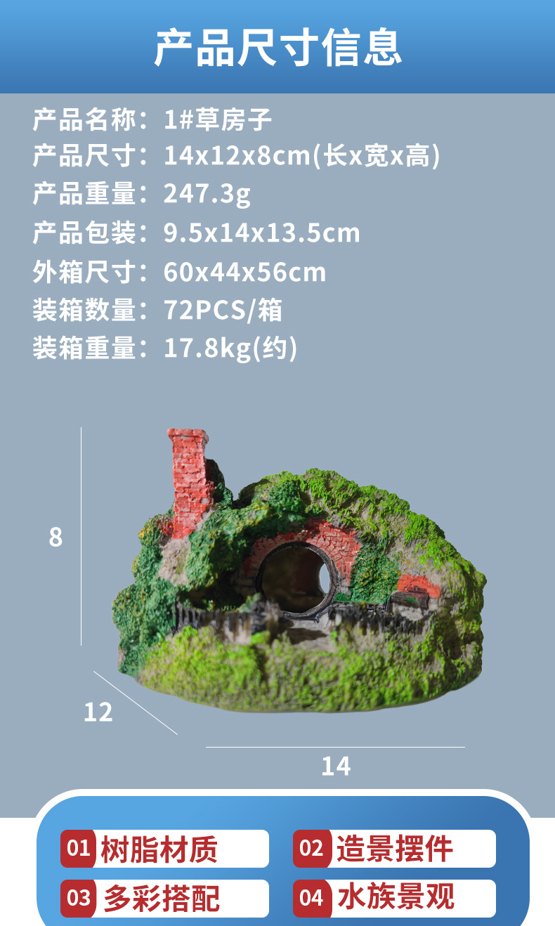Pecera explosiva, decoración de paisajismo, casa de paja de micropaisaje, casa de paja real de resina, casa de paja, decoración artesanal de acuario