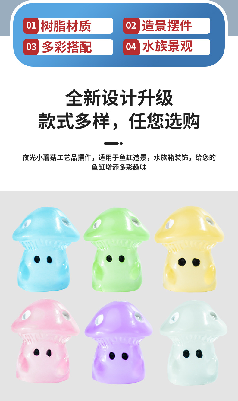 Lindos ojos color pequeño hongo nuevo mini resina luminosa hongo hombre pequeño modelo creativo decoración de micro paisaje