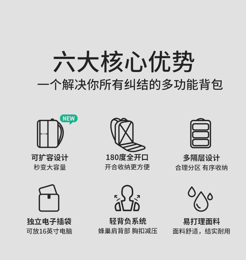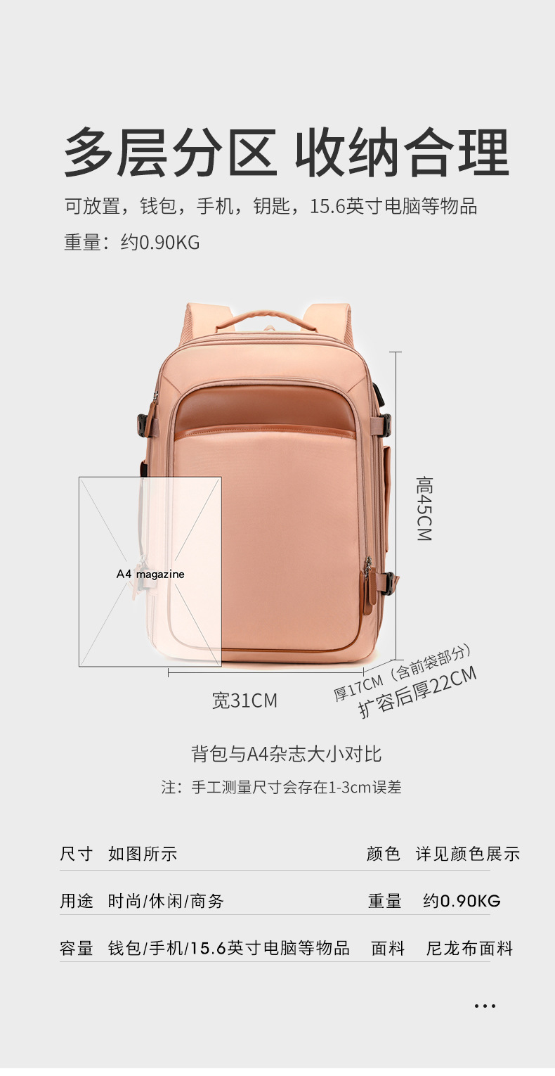 Nueva mochila de viaje de gran tamaño, mochila expandible, mochila para portátil, mochila para equipaje, bolsa de almacenamiento de negocios ligera