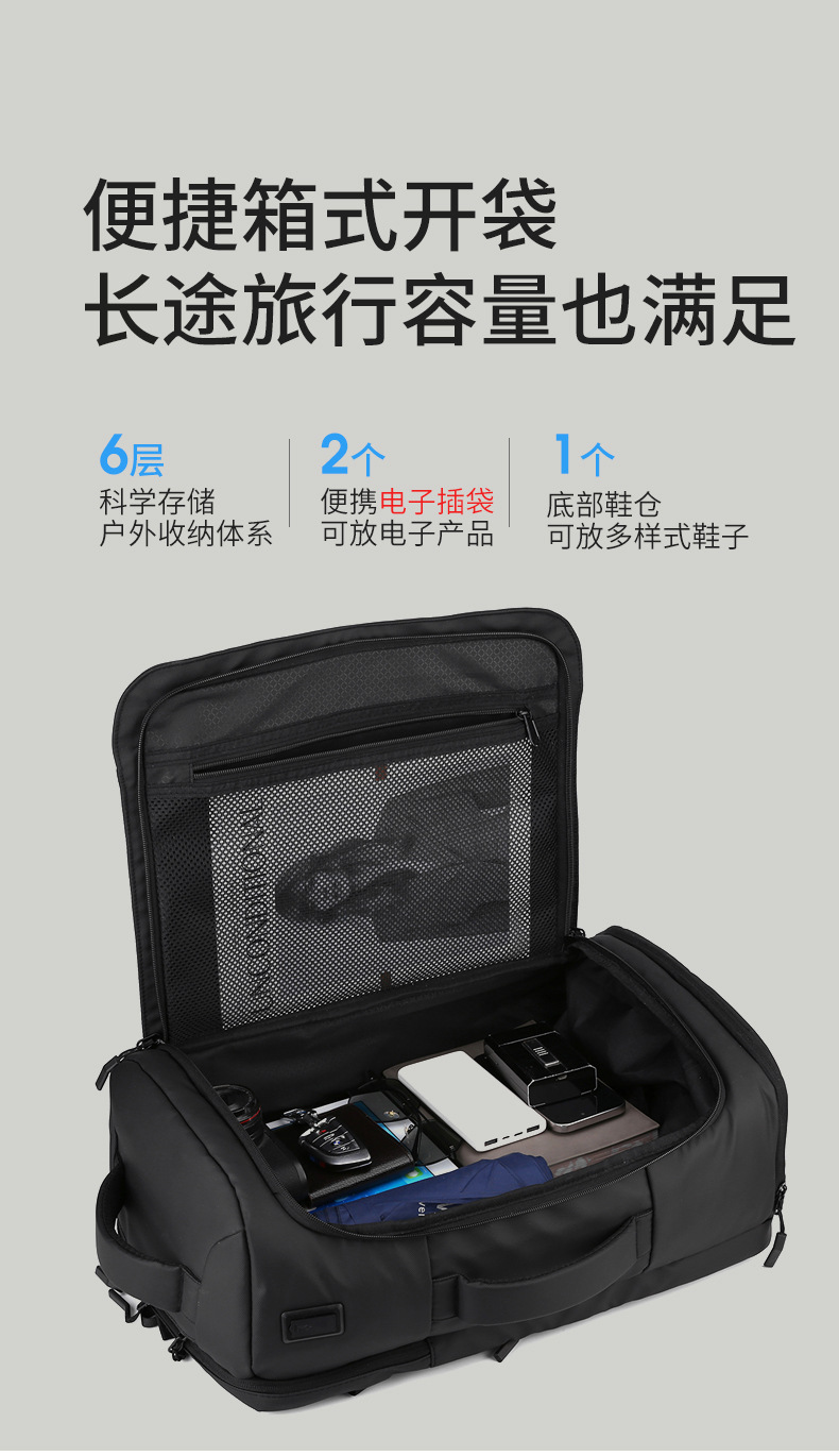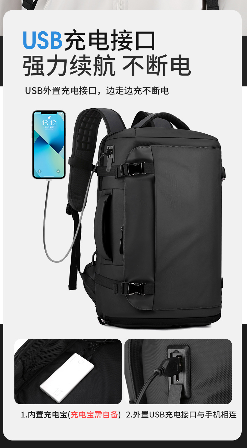 Bolso abierto transfronterizo mochila simple al aire libre transpirable reducción de carga doble hombro bolso de hombre de gran capacidad almacén de zapatos independiente USB