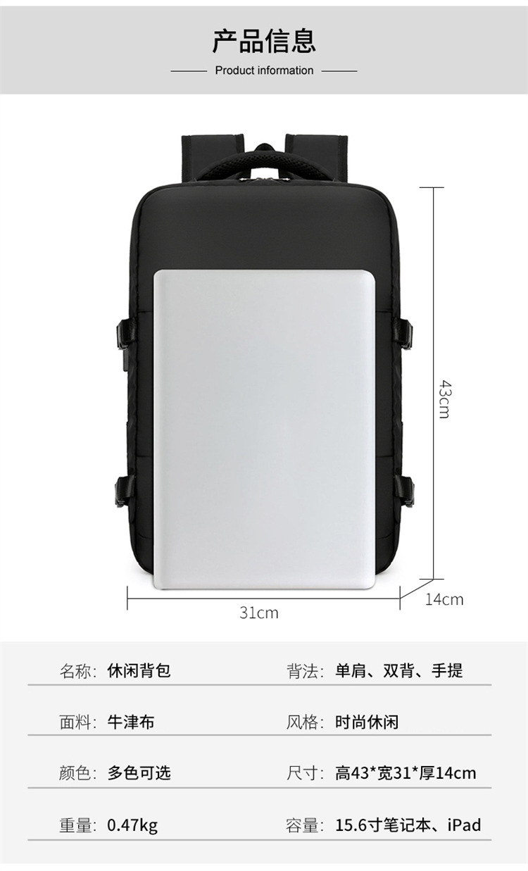 Bolso para computadora portátil de viaje de negocios de color sólido de nuevo estilo transfronterizo para estudiantes universitarios Bolso de viaje de ocio de moda Mochila