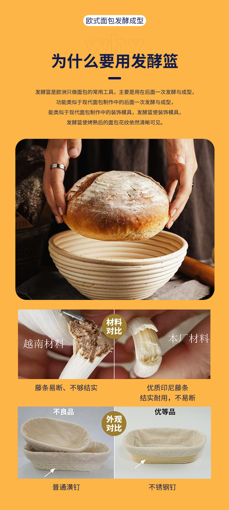 Cesta de fermentación Pan Bollo europeo Hogar Redondo de ratán indonesio Cesta hecha a mano Masa Cesta de fermentación Molde especial para hornear