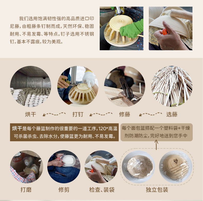 Nuevos productos personalizados PP ratán cesta de fermentación europea utensilios para hornear cesta de pan de fermentación rural cesta de fermentación de masa