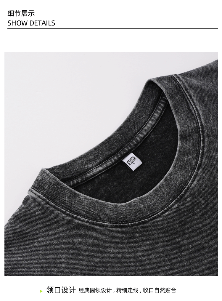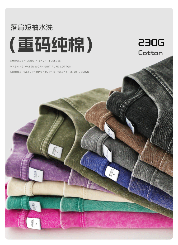 Camiseta de algodón usada lavada, pesada, marca de moda estadounidense de manga corta 230g, tamaño europeo transfronterizo, hombros sueltos, gran versión de lavado de arena T