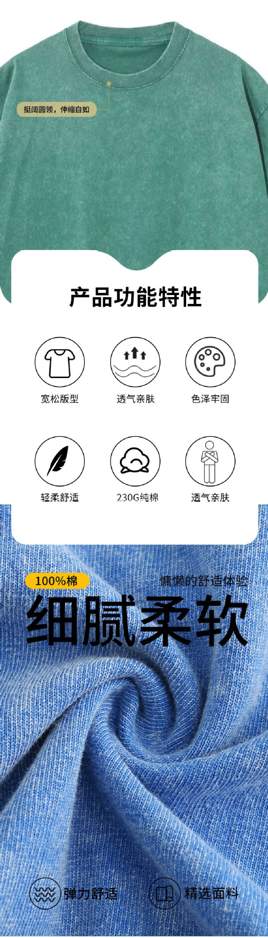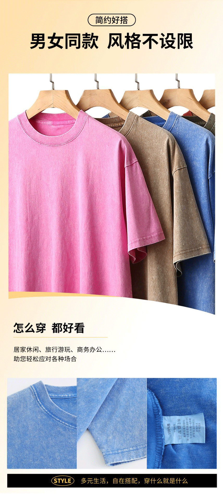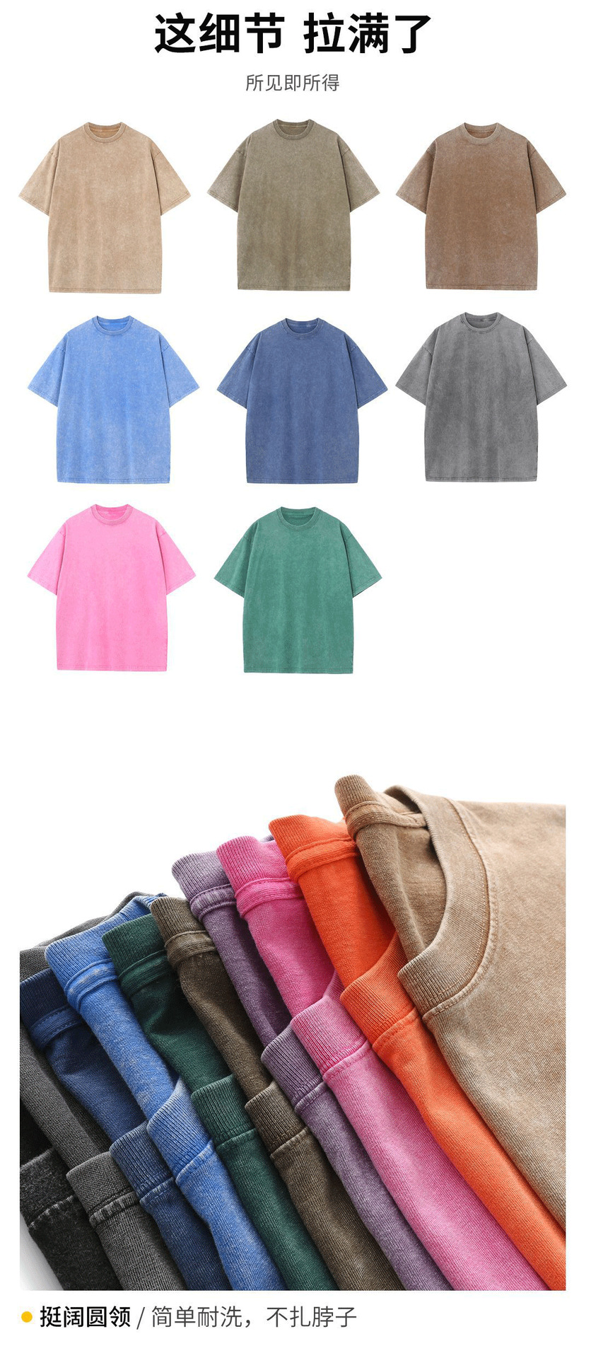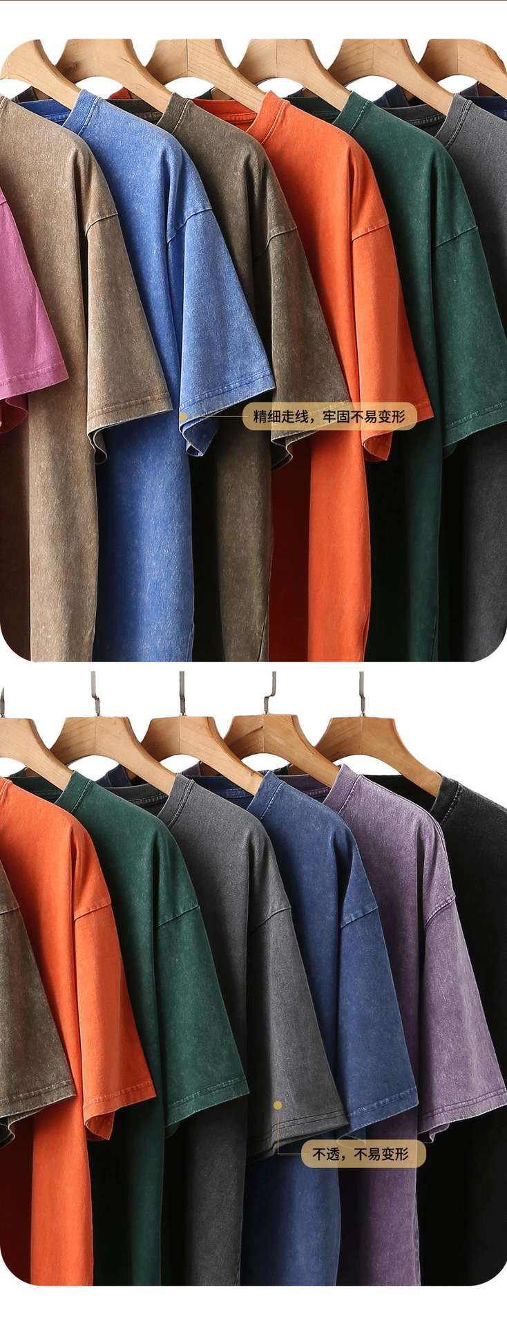 Camiseta de manga corta desgastada de peso pesado de algodón de 230g batik lavado hombros caídos de algodón retro camiseta suelta oversize