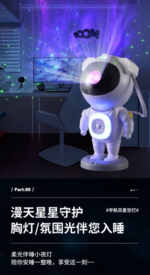 Nueva luz de proyección de cielo estrellado Bluetooth transfronteriza, colorida atmósfera de astronauta de carreras de caballos, luz nocturna, adornos de astronauta RGB