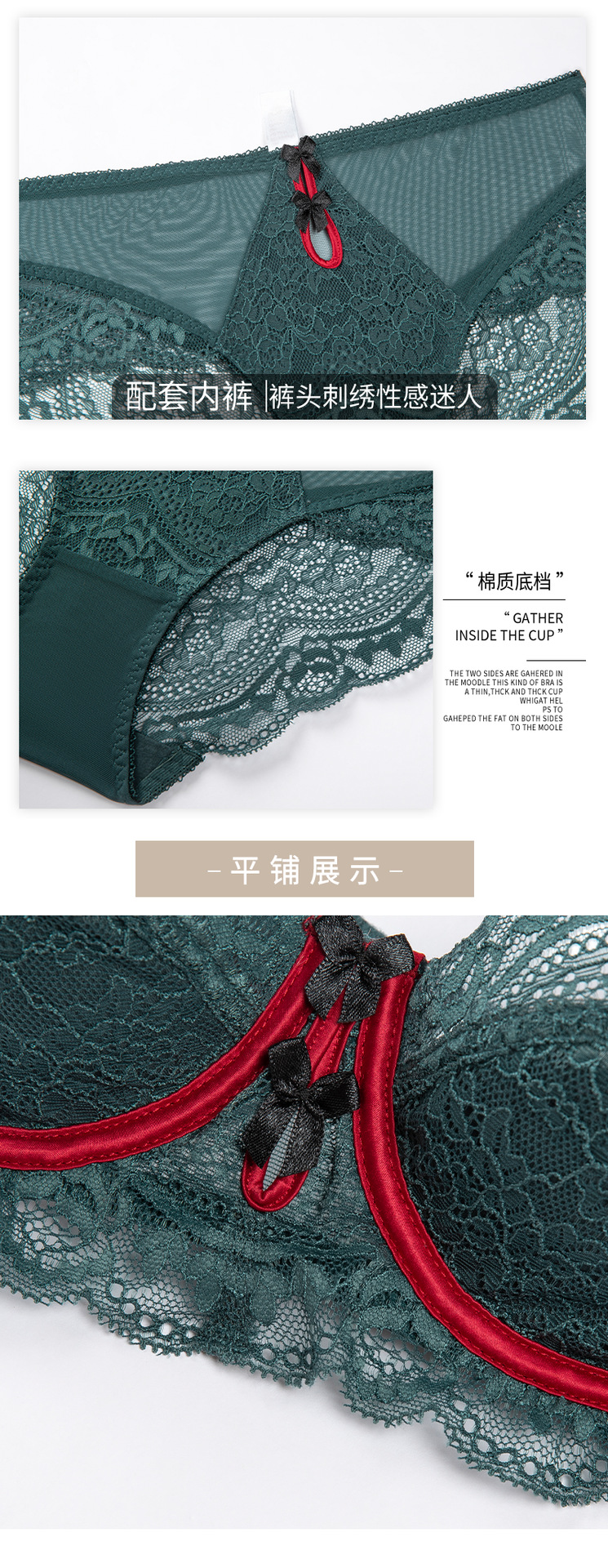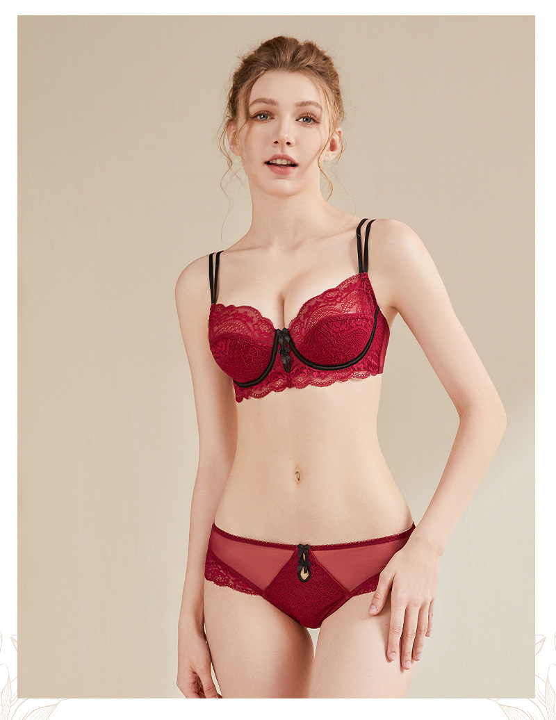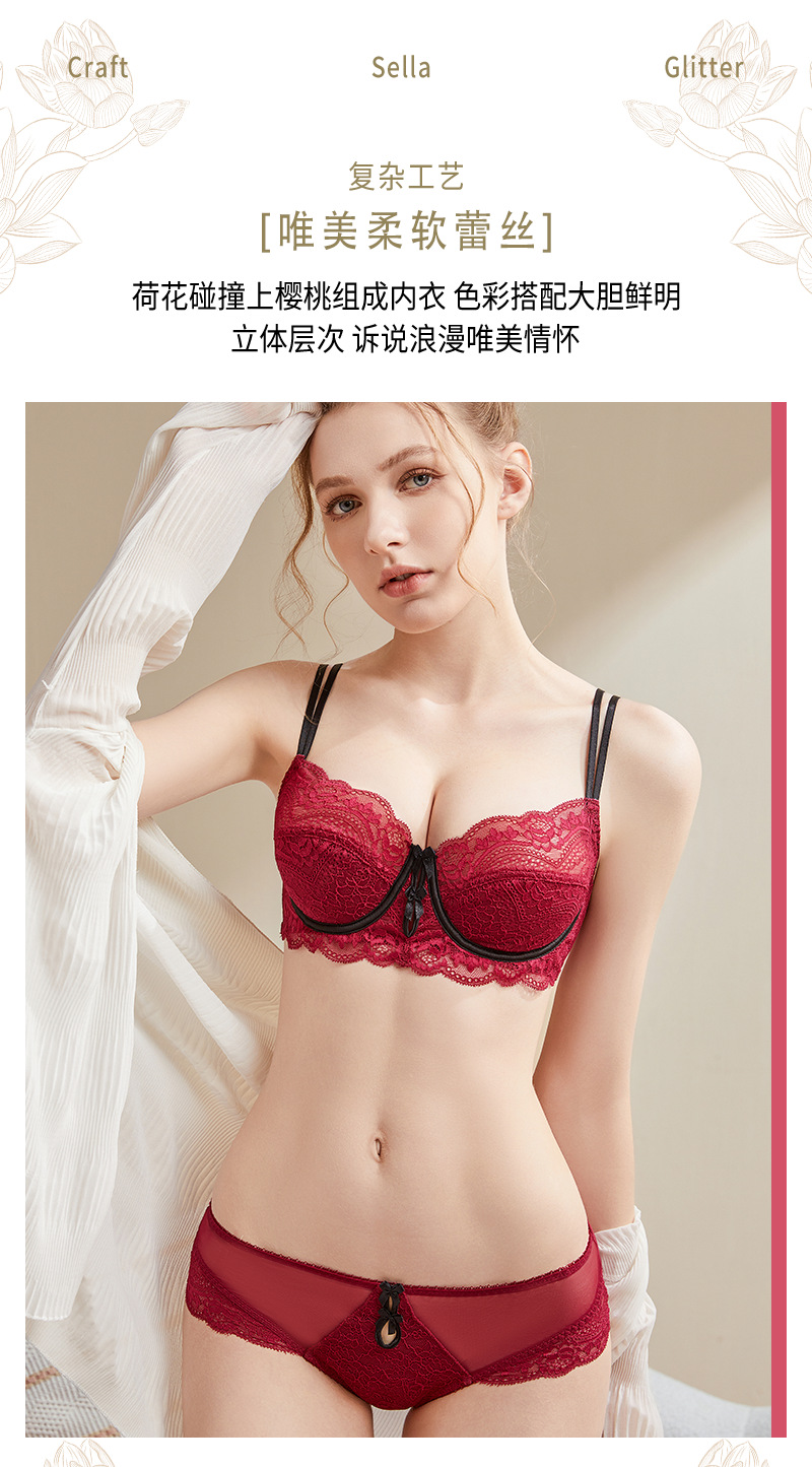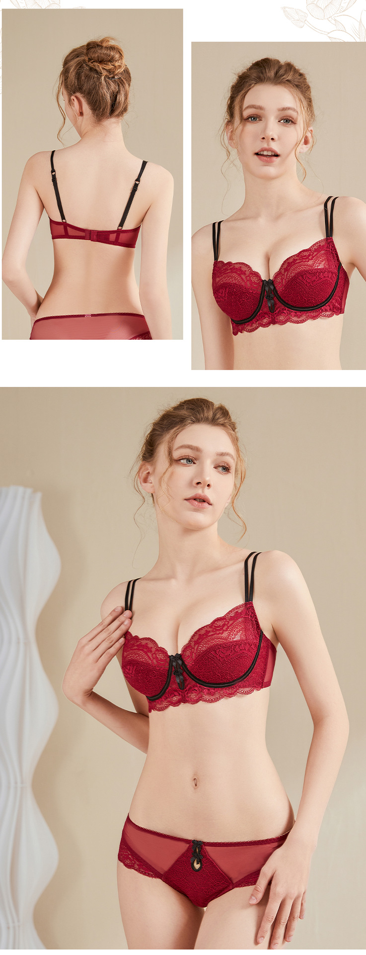 Ropa interior de encaje rojo sexy francés transfronterizo, ultrafino, puro, pechos grandes, pequeños, año de nacimiento, conjunto de pecho